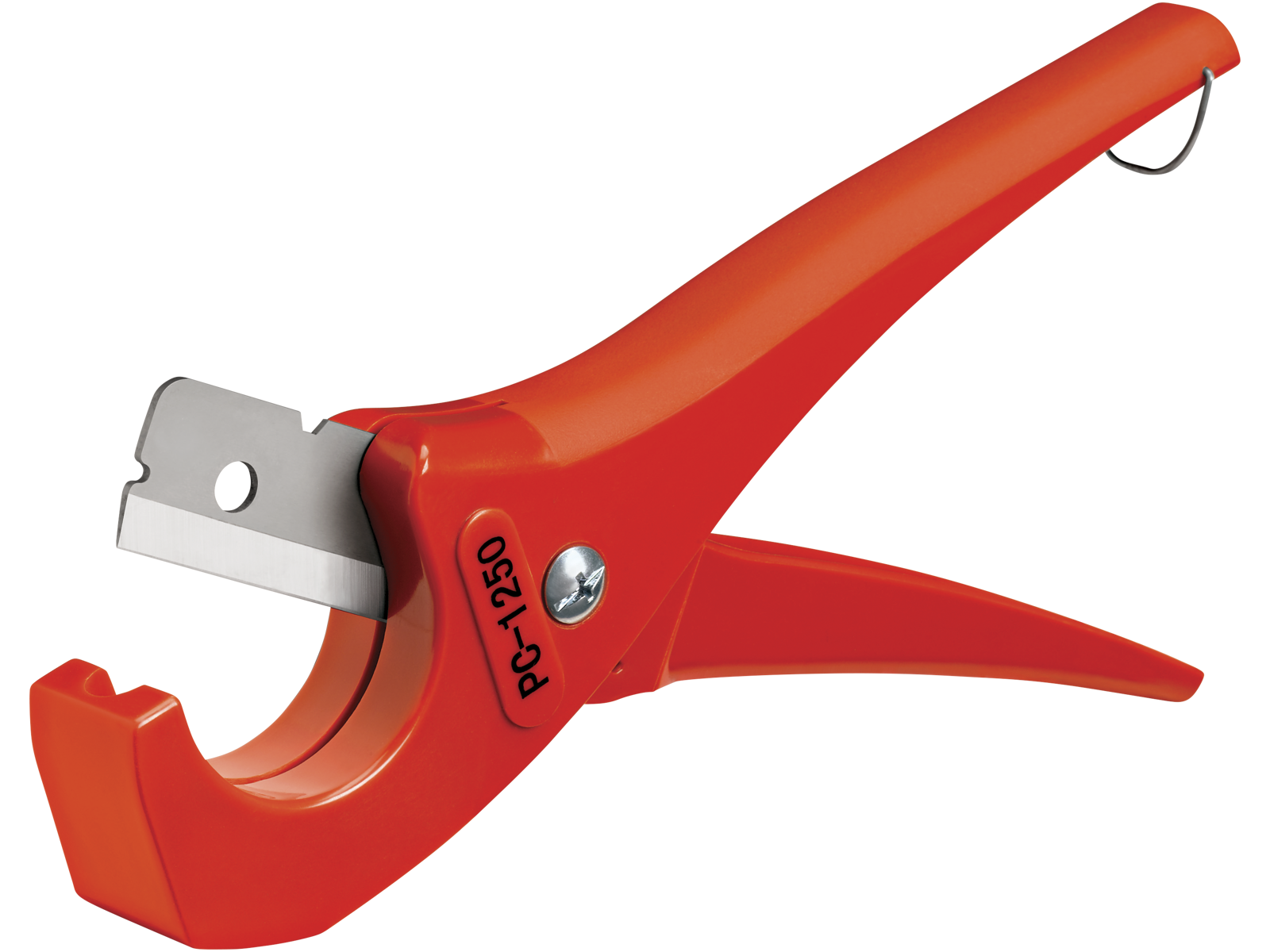 PC-1250 rørskærer med enkelt vandring. Til plast (PVC, CPVC, PP, PEX, PE) og flerlagsrør. Fjederbelastet håndtag giver hurtigere positionering. Enkelt vandring, let skæring. Har en vendbar klinge, der giver dobbelt levetid for klingen. Er ikke egnet til skæring af flerlagsrør.