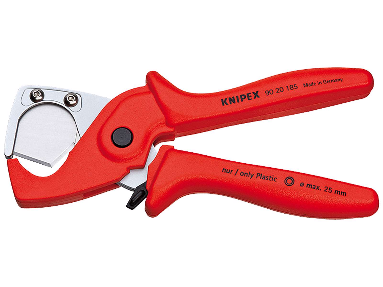 Til at skære tyndvæggede kunststofrør (f.eks. kunststof-panserrør) og slanger, også vævsforstærket, af kunststof og gummi op til Ø25 mm udvendig diameter. Uegnet til at skære kabler. Med åbningsfjeder og spærrepal. Værktøjskrop i kunststof, glasfiberarmeret. Kniv i special-værktøjsstål, oliehærdet, kan udskiftes.