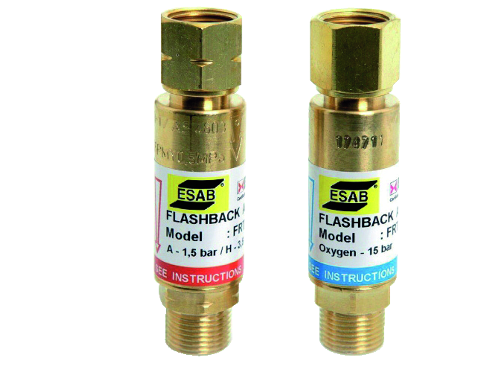 Tilbageslagssikring Super 55. Tilbageslagssikring til anvendelse med en regulator til brændbar gas og oxygen, når disse anvendes til gassvejsning, skæring eller varmning. Super 55 har fem sikkerhedsfunktioner: Forhindrer tilbageløb, stopper og slukker tilbagebrænding, afbryder gasforsyningen i tilfælde af gennemtrængende tilbageløb samt afbryder gasforsyningen i tilfælde af overophedning. Når Super 55 er lukket pga. tilbageløb eller tilbageslag, angives dette med en rød farve. Nulstilling udføres ved at løfte dækslet, indtil den røde indikator forsvinder. Super 55 er velegnet til de fleste typer arbejde undtagen høj kapacitetsanvendelse. Kapaciteten kan fordobles ved at bruge to Super 55 sikringer i parallel forbindelse.