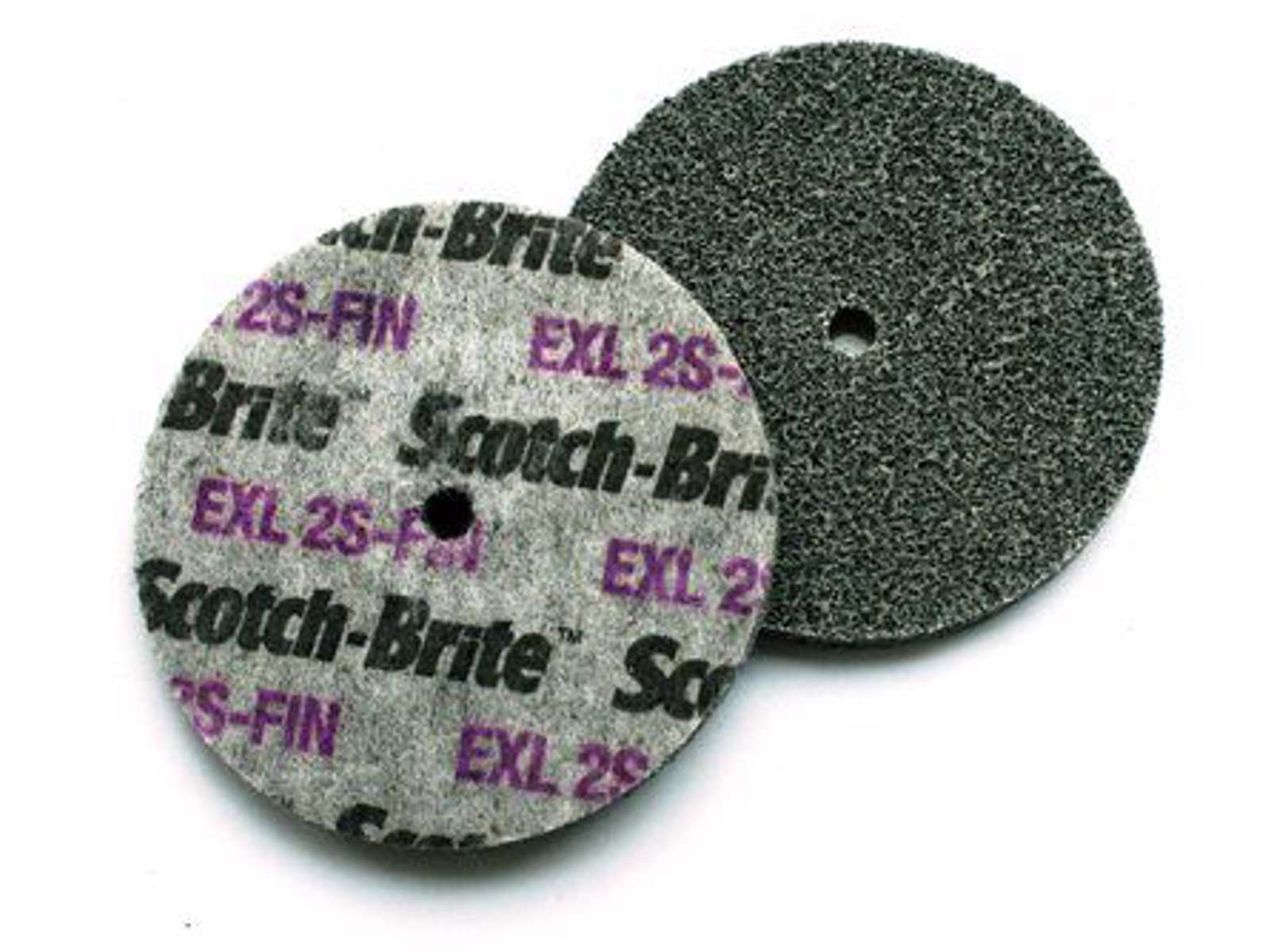 3M Scotch-Brite hjul XL-UW. Sammenpresset ikke-vævet fiberkonstruktion giver en ensartet kornfordeling, der producerer ensartede resultater. EXL-materialet er ekstremt hårdt med et aggressivt skæreforløb, for effektiv afgratning af kanter og hjørner uden at beskadige delen. Fås i flere varianter.