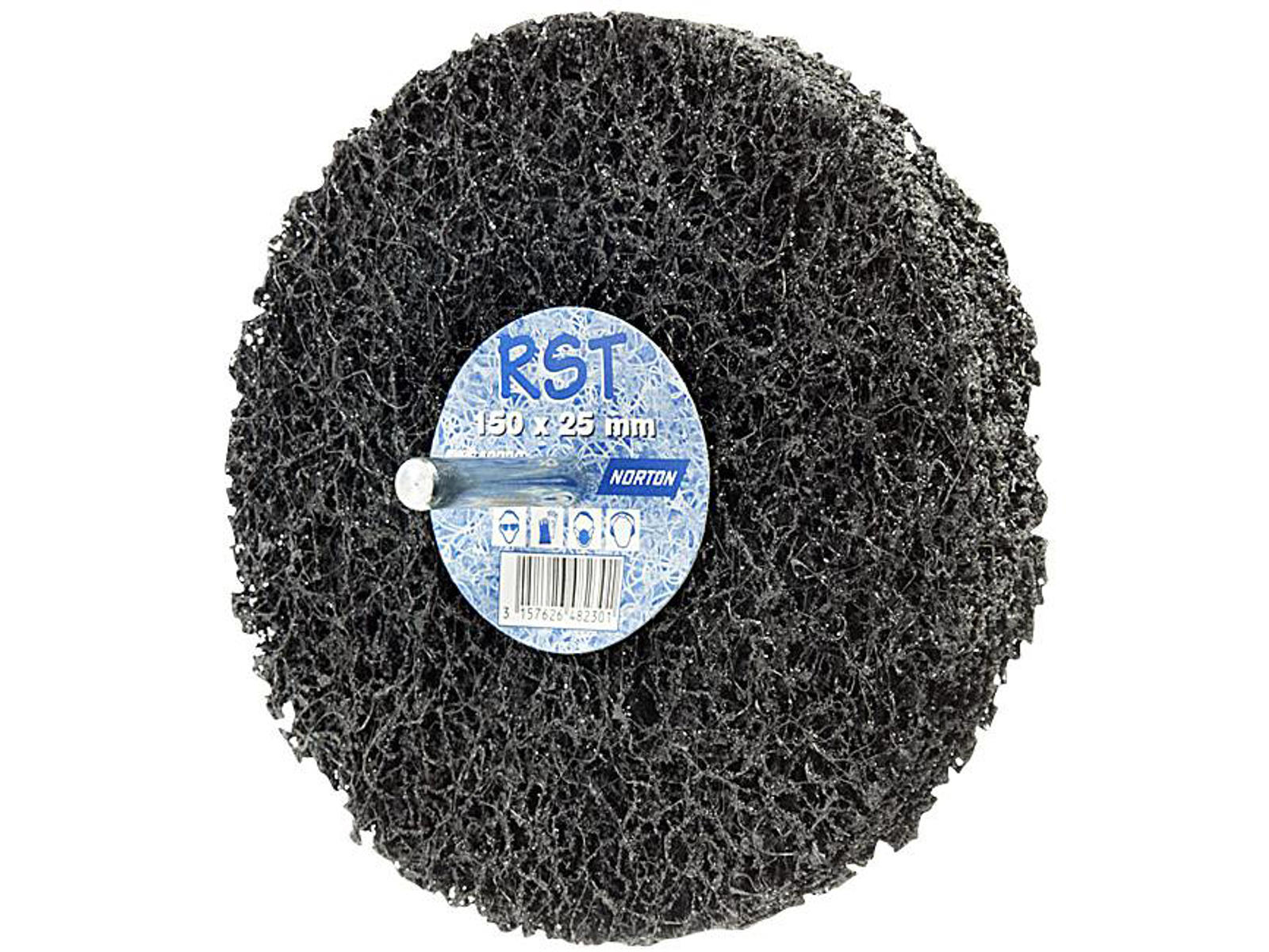 Bear-Tex. Rapid Strip (sort). Rondeller med monteret spindel til alle typer grovrengøring, oxidfjernelse, forberedelse til svejsning etc. Finhed: Ekstra grov. Anbefalet arbejdshastighed 25-30 m/s. Maks. hastighed 43 m/s.