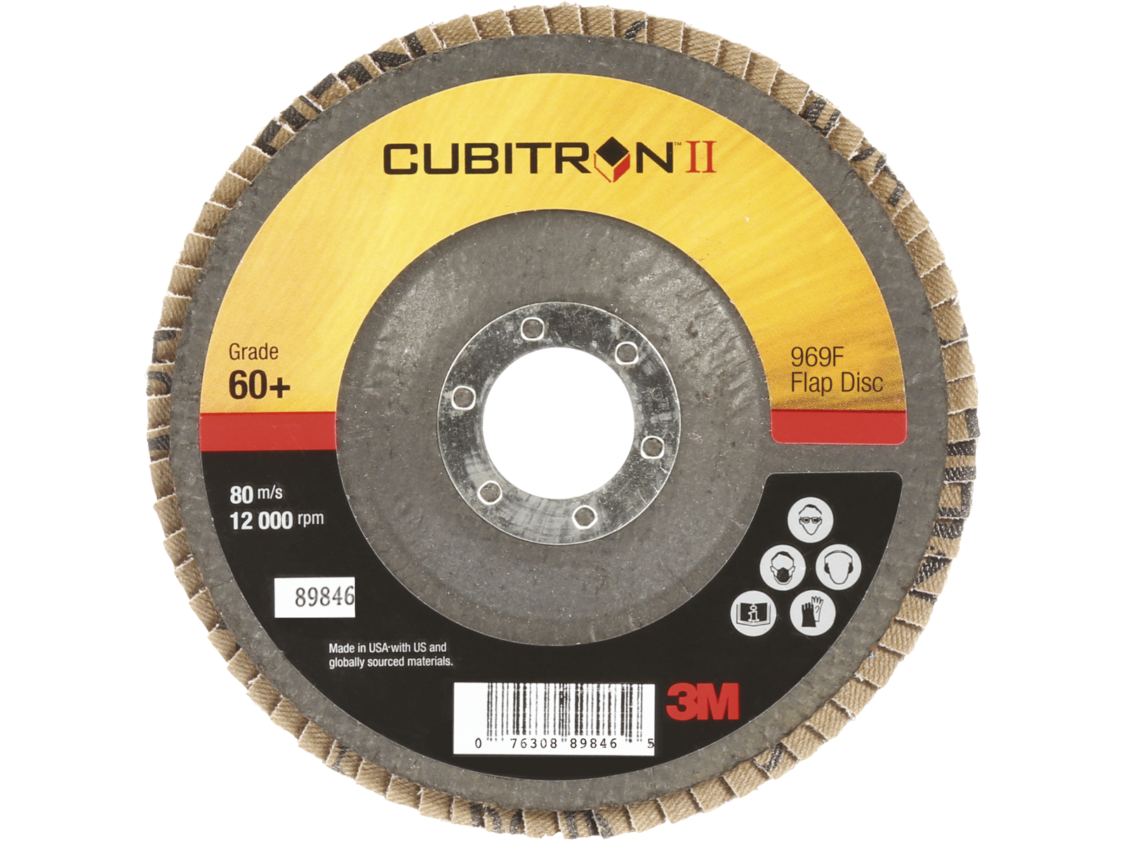 Cubitron II flaprondel 969F P flad, designet med slibeflapper giver et blødt og jævnt snit på afrundede eller ujævne flader.