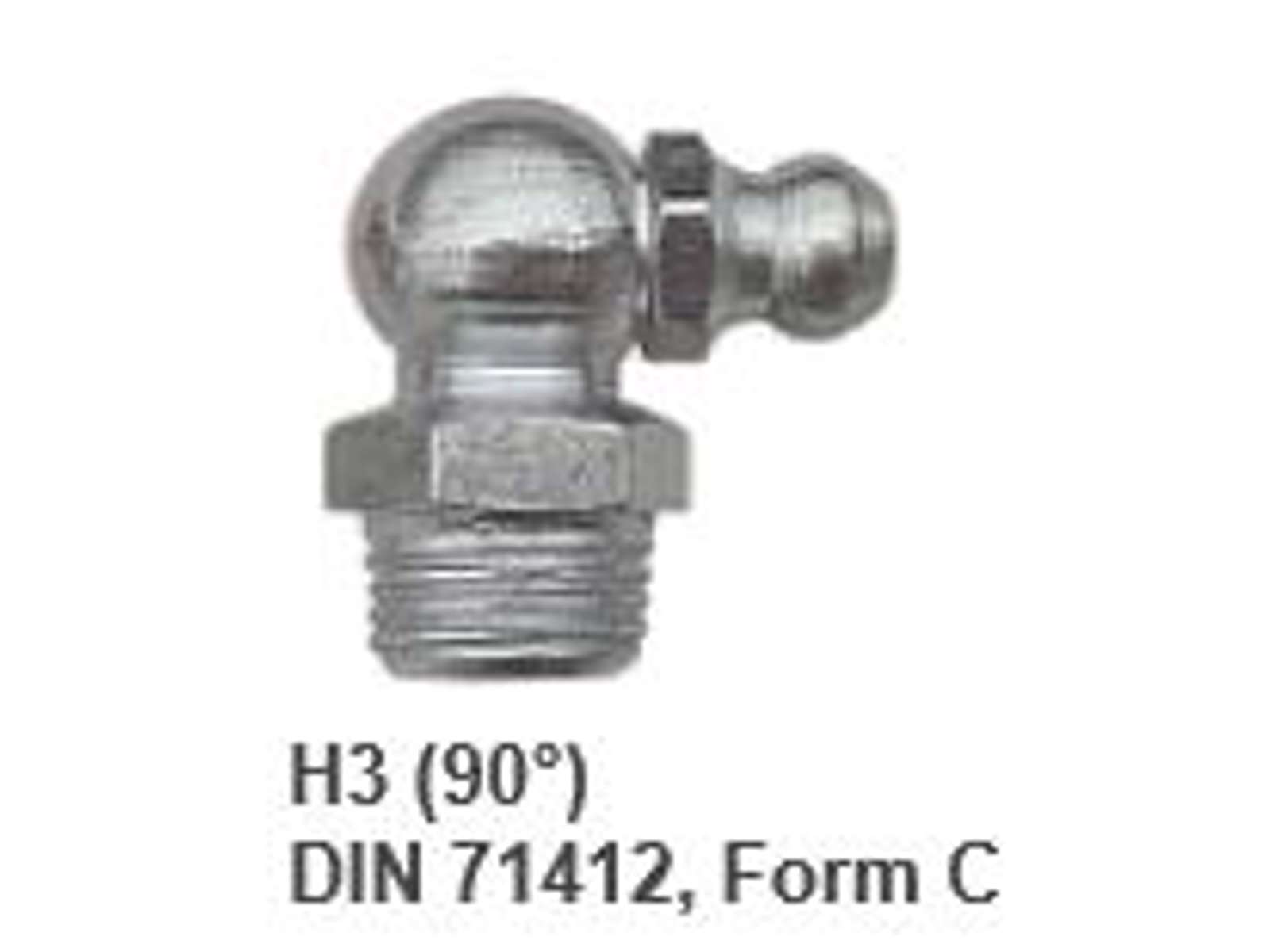 Elgalvaniseret H3 smørenippel, 90° form C. DIN 71412. Fås i flere varianter.