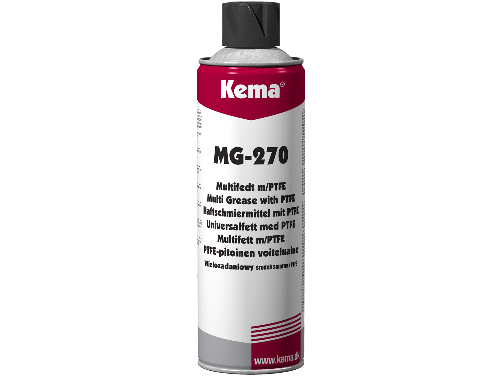 MG-270 er et lugtfrit fuldsyntetisk højtryksbestandigt smøremiddel med meget lav toksicitet. Produktet har optimale vedhæftende egenskaber og en stor krybeeffekt, da det indeholder PTFE-kugler, der trænger ind overalt. MG-270 er velegnet til smøring indenfor vedligeholdelses-, sukker-, papir- og tekstilfremstillingsindustrien. Produktet anvendes til dele som udsættes for stærke påvirkninger i form af svingninger og rystelser. F.eks. åbne tandhjul, tandstænger, kædehjul og kæder. Fortrinligt dør- og vindues smøremiddel. Kan normalt anvendes sammen med andre olier, da MG-270 er blandbar med de fleste organiske og syntetiske olier. MG-270 er neutral overfor de fleste typer af gummi, kunststof og lak. Det indeholder ikke metalsalte og modstår højtryksspuling og damp. Produktet er afvisende overfor fersk- og saltvand, yder langtidsrustbeskyttelse og har god syremodstandsdygtighed. Egenskaber: Højtryksbestandigt lyst fedt, fuld syntetisk, indeholder PTFE, vedhæftende, vandafvisende og rustbe