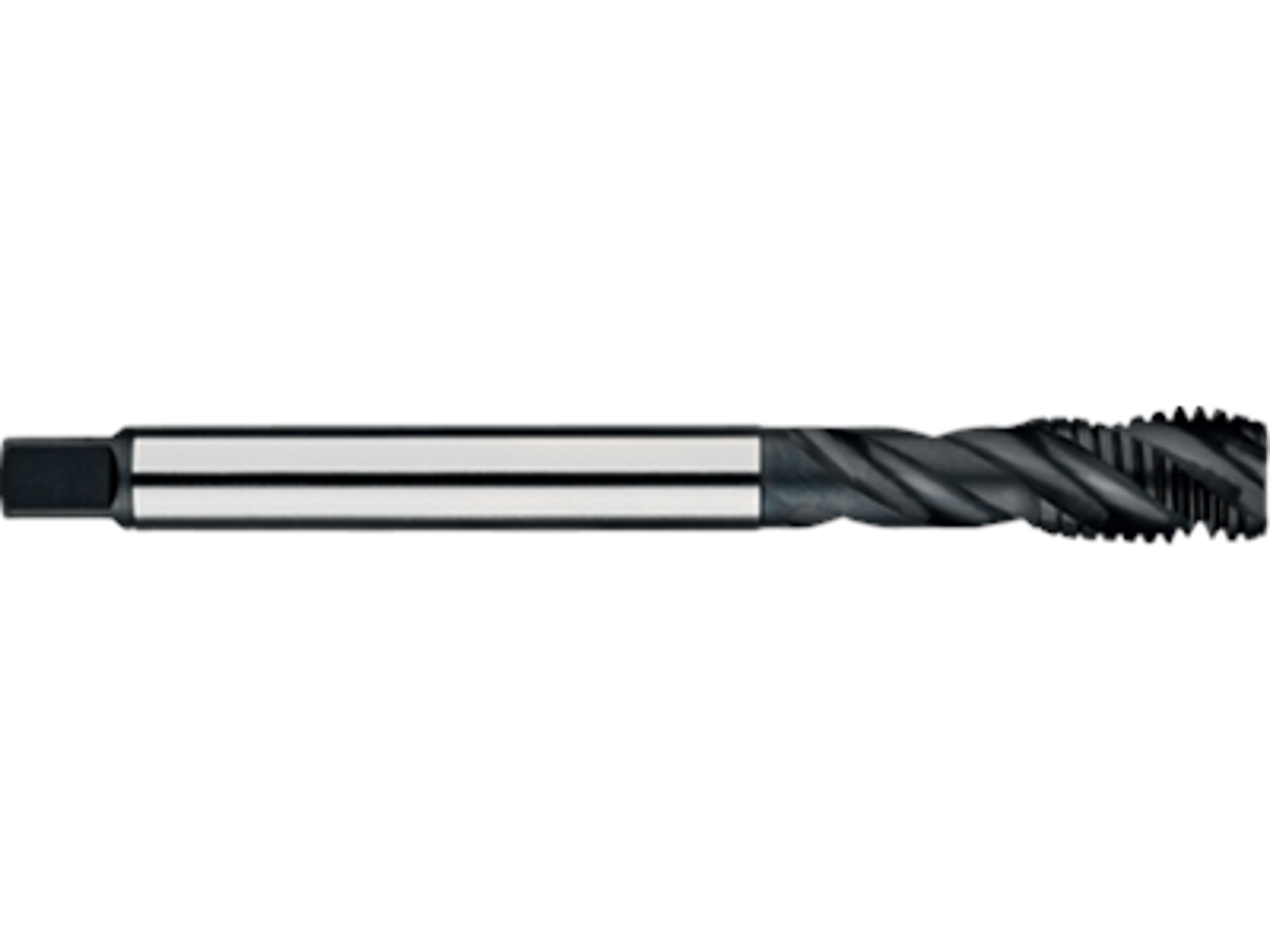 DIN 371, 60°, forstærket skaft, helix 45°, for lukkede huller, fremføring 2,5 affasning, skæringsvinkel 14-16°, snitlængde 10 gevind, omvendt konisk efter 5. affasning, også velegnet til ulegeret stål.