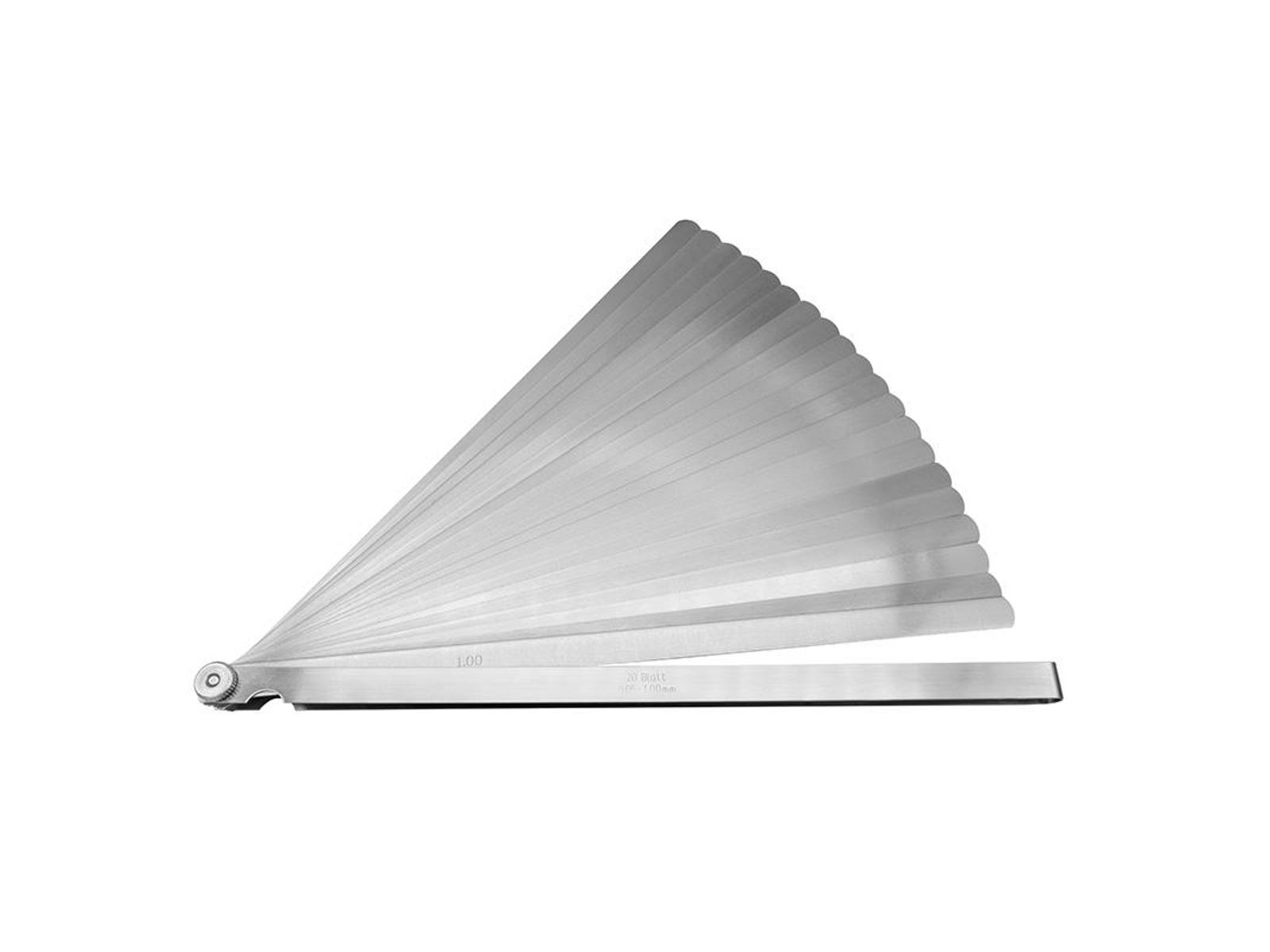 • Søgerbladesæt med millimeter-dimensioner. Til kontrol af slidser, spillerum i lejer m.m. Fremstillet af rustfrit stål (Inox A2) og leveres i beskyttelsesbøjle med låseskrue.