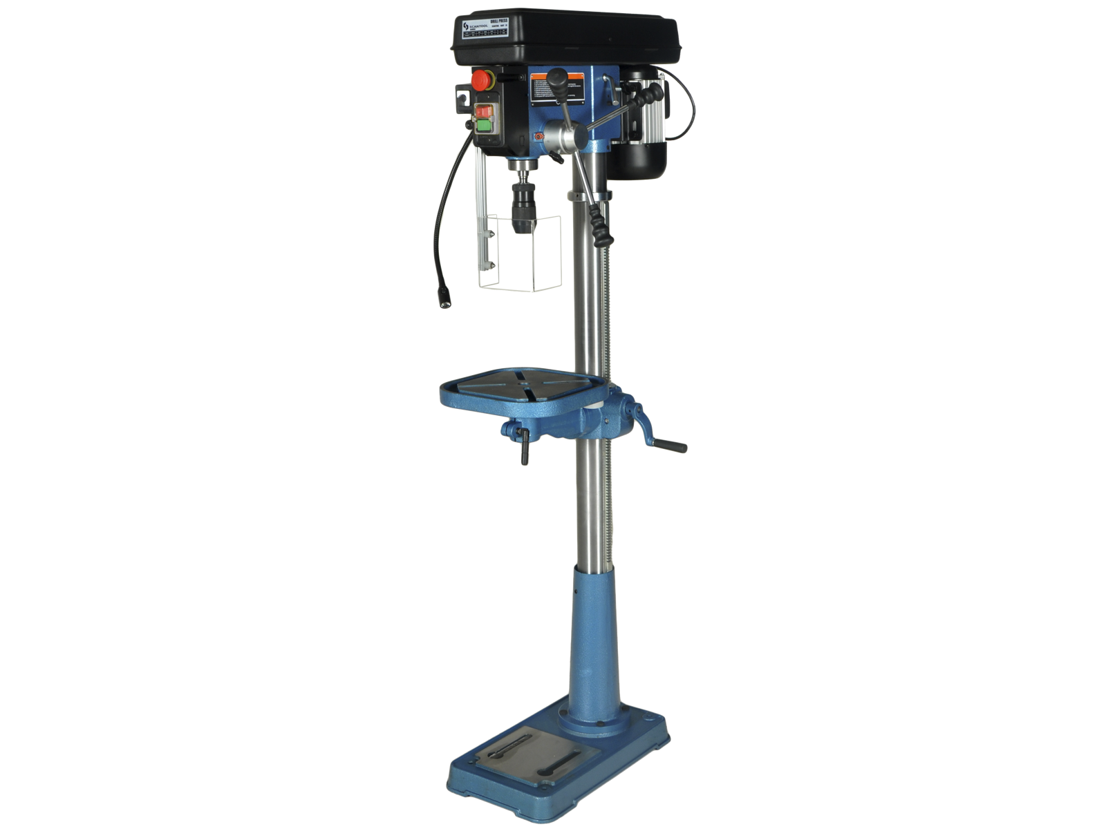 • Kapacitet fra 1 mm til 20 mm. Leveres komplet med selvspændende borepatron. Separat nødstop og justerbar arbejdslampe. Udstyret med sikkerhedsafbryder ved remskifte. Beskyttelsesskærm med micro switch. Vipbart bord med gradindstilling. Leveres med højre og venstre løb (reversible) til brug f.eks. for gevind. Maks. spindelvandring 80 mm. Udladning 190 mm. Borepatron 16 mm. Svingkapacitet 410 (14"). Maks. afstand spindel & bord/sokkel 720/1.210 mm. Borddimension 285x285. Maks. Bordvipning ± 45°. Sokkeldimension 480x270 mm. Totalhøjde 1.600 mm. 3x380 V, 750 W. 12 hastigheder. 280-2.380 omdr./min. Vægt 67 kg.