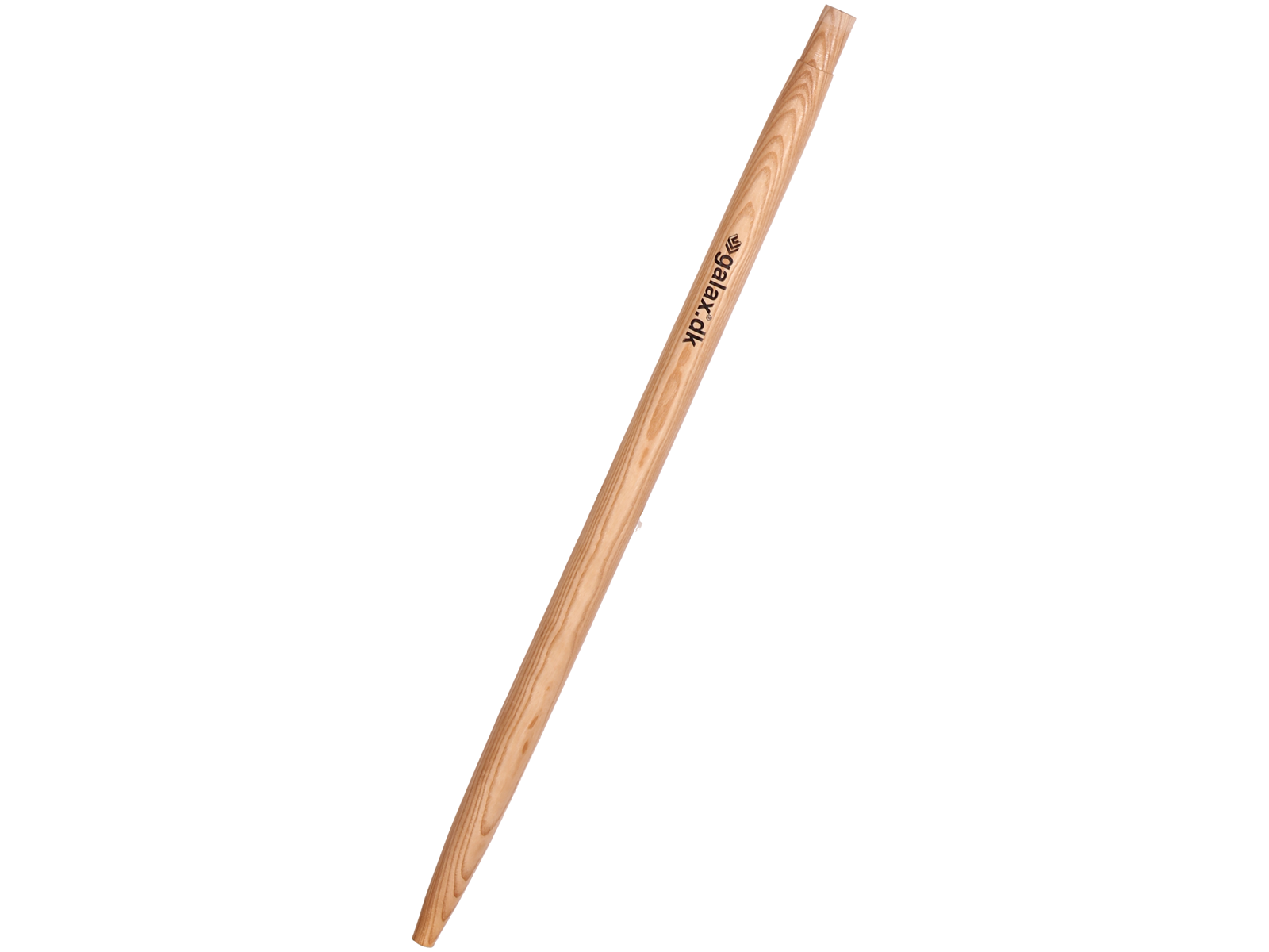 Lakeret asketræsskaft med D-greb i jern til drænspade.