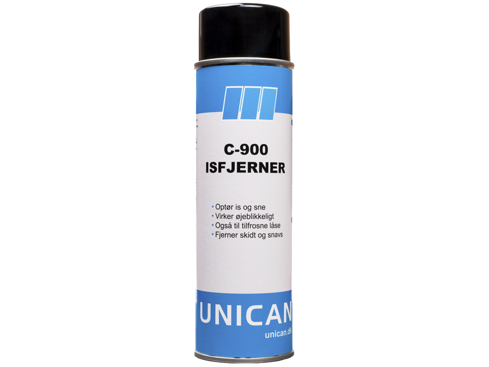 C-900 Isfjerner er en yderst effektiv spray til af-isning af frontruder og låse i selv de koldeste vintermåneder. Selvom C-900 Isfjerner virker øjeblikkeligt og er yderst effektiv, så er den samtidig meget skånsom overfor gummi-lister, viskere og de fleste laktyper. C-900 Isfjerner påføres autoruden, spejle m.v. i en afstand af 25-30 cm. Sørg for at hele emnet er dækket, afvent nogle få minutter til isen/sneen er smeltet og fjern resterne med en skraber. Til af-isning af låse sprayes C-900 Isfjerner direkte ind i låsen.