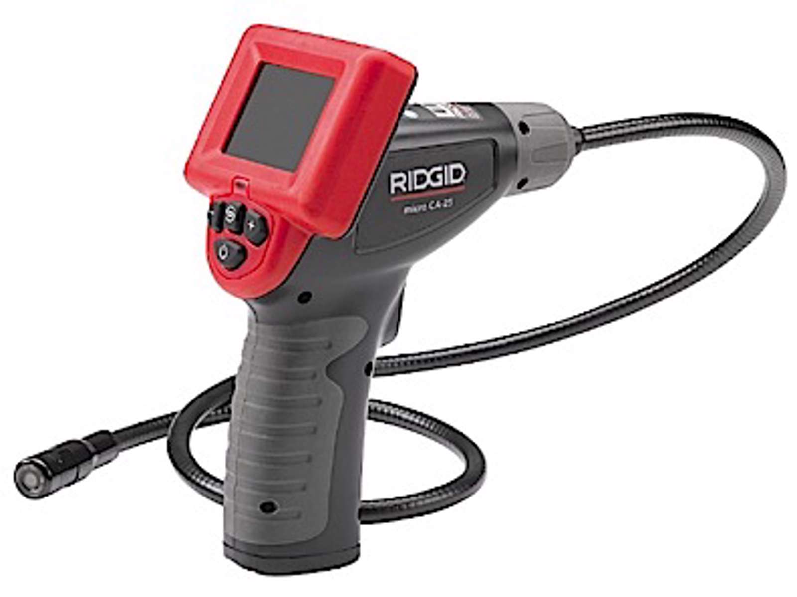 Et kompakt håndholdt inspektionskamera med et fast 17 mm kamerahoved til basale inspektionsopgaver over kort afstand. Micro CA-25 har et 17 mm kamerahoved i aluminium med 4 meget klare LED lamper, der overfører overlegen billedkvalitet til den 2,4" store LCD farveskærm. Kameraet har desuden en videoudgang til overførsel af levende billeder til ydre enheder og 180° digital billedrotation til opretstående billeder. I en plastkasse med hård overflade medfølger krog, magnet, spejl og RCA-kabel. 2,4" farve LCD (480×234 opløsning) display. Kamerahoved i aluminiumskonstruktion, 17 mm diameter. Lys 4 Justerbare LED. Kabelrækkevidde 3 fod (90 cm) fast. Billedrotation 2×180°. Videoudgang 3 fod (90 cm) RCA-kabel (medfølger). Vandtæt kamera og kabel til 3 fod (90 cm). Bruger 4 stk AA-batterier. Tilbehør: spejl, krog og magnet. Vægt 0,68 kg.