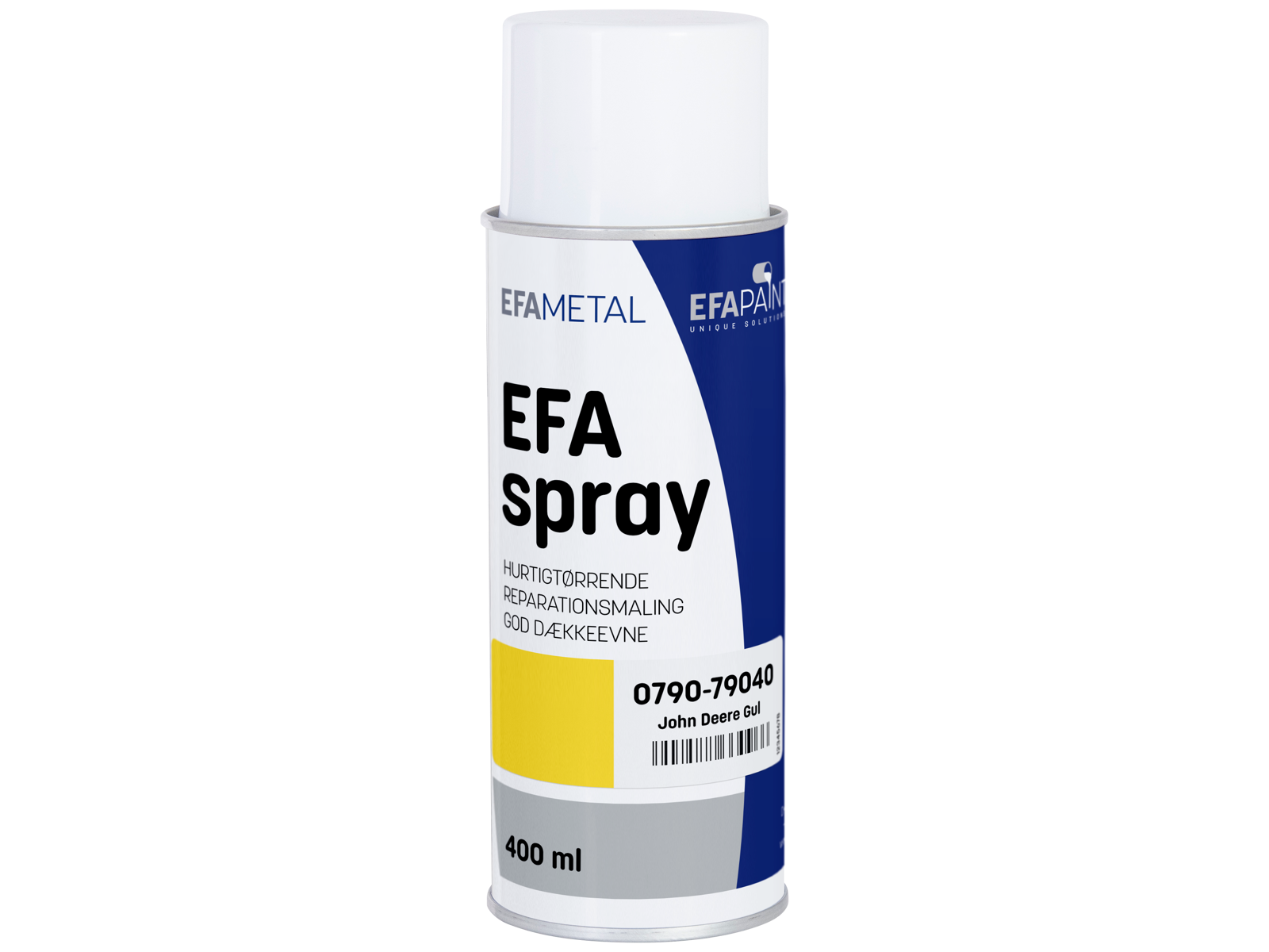 • Reparationsmaling til overfladebehandling af stål efter grunding. Spraymaling på basis af alkyd og med propan/butan som drivmiddel. Efaspray er hurtigtørrende og velegnet til reparation af mindre områder.