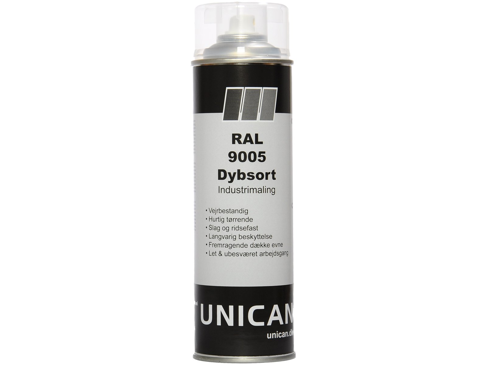 • Vejrbestandig, hurtigtørrende RAL-farve spraymaling med særdeles god dækkeevne samt slag- og ridsefaste egenskaber for en langvarig beskyttelse. RAL-farve er yderst velegnet til at give en flot og beskyttende finish på alle former for maskiner, konstruktioner og andet udstyr. RAL-farven kan også bruges som opmærkningsspray på værktøj eller andet, som ønskes markeret. For bedste resultat anvendes Unican P-55 Grå Primer inden påførelse af RAL-farven. Rengør overfladen for fedt og snavs, ryst dåsen omhyggeligt og påfør RALfarven i en afstand af 25-30 cm. Hvis tykkere lag ønskes, kan nyt lag påføres efter ca. 5 minutter. Produktet kan anvendes udendørs eller i et tilstrækkeligt gennemluftet område. Det optimale resultat opnås ved en temperatur mellem 10-25°C og en fugtighedsgrad, der ikke er for høj - helst under 60 %. Rens dysen efter brug ved at spraye 2-3 sekunder med dåsen vendt på hovedet. Fås i flere farver.