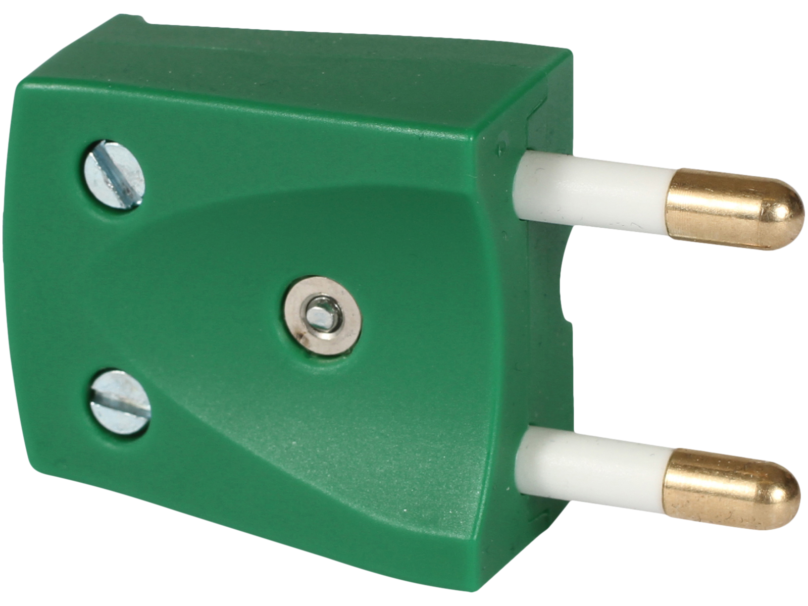 Grøn flad stikprop, eller grøn forlængerled. Begge uden jord, og i ekstra forstærket plast. 230 V, 16 A.