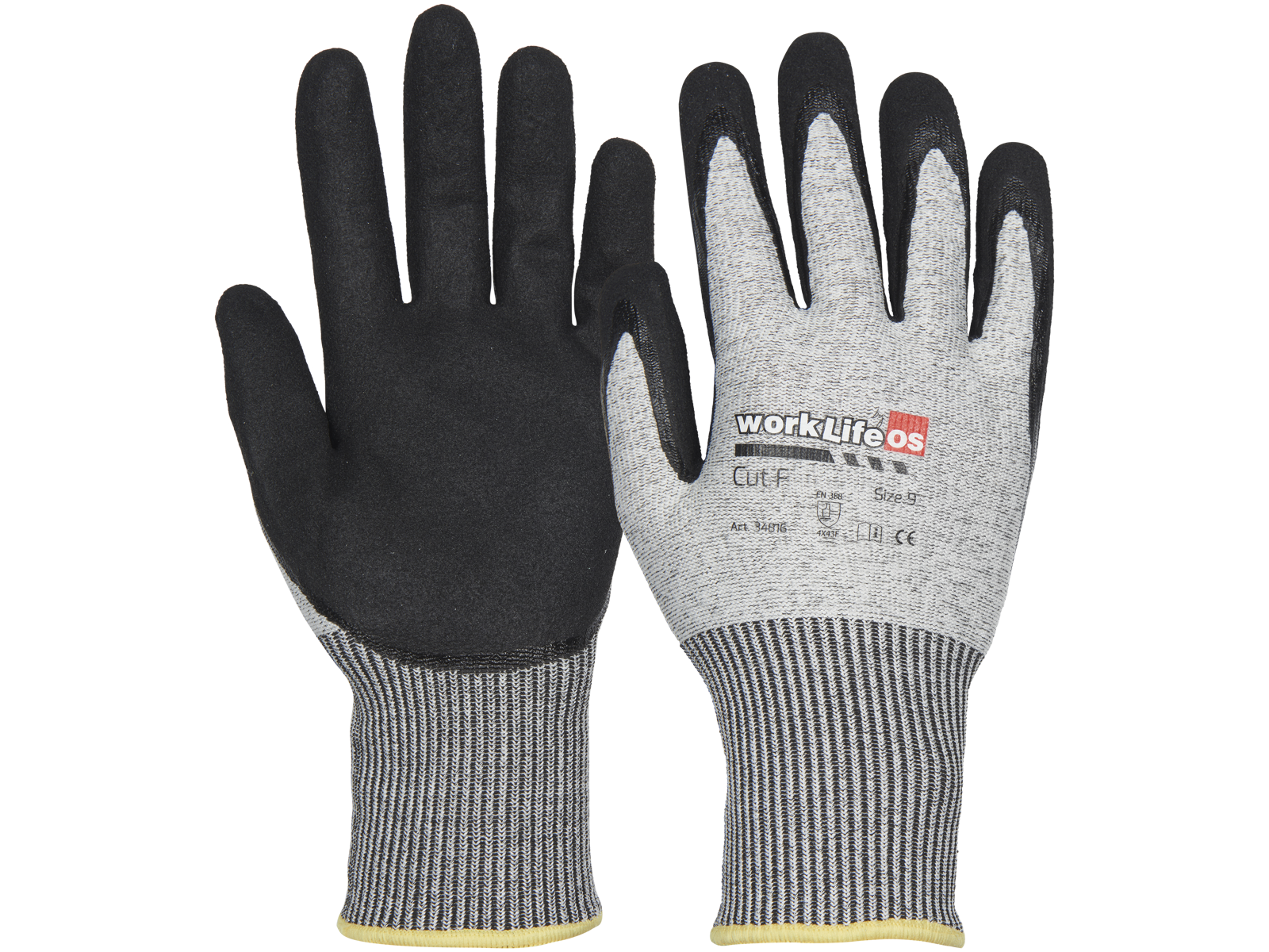 Sømløs skærehæmmende handske med ribkrave. Uforet, halvdyppet handske af HDPE/glasfiber/polyester med sandy foamoverflade og nitrilfoam-belægning. Ideel til industri samt lager- og vedligehold hvor der er risiko for skarpe genstande. Godkendelser: EN 388:2016 og EN 420:2003+A1:2009. Kategori II.