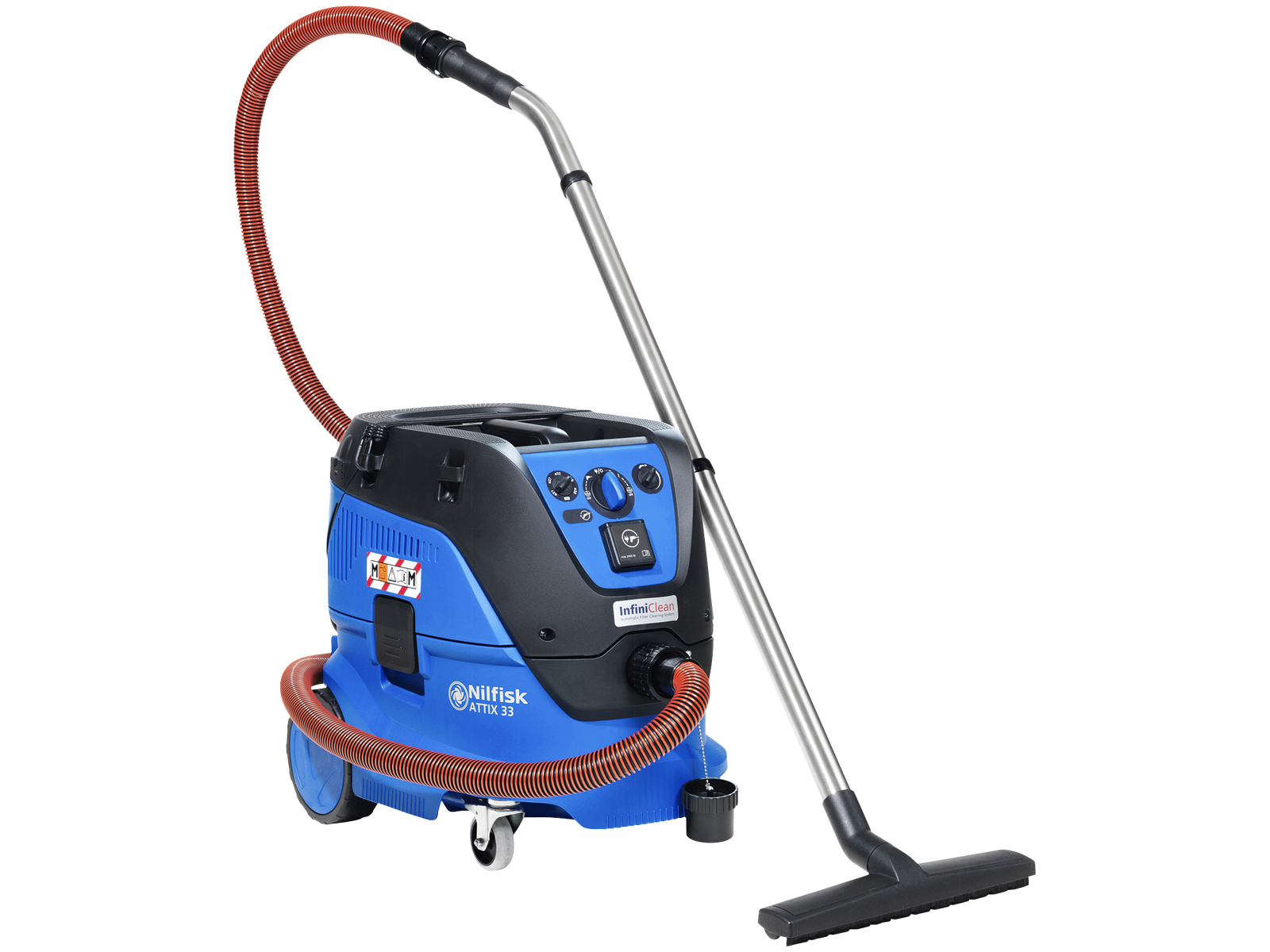 • ATTIX 33 er en kraftfuld våd-/tørsuger udviklet og konstrueret til høj effektivitet, øget produktivitet og lave vedligeholdelsesomkostninger. ATTIX 33 våd-/tørsuger er robust og nem at håndtere - også ved transport fra sted til sted. Modellen opfylder sikkerhedsklasse M. ATTIX 33 er konstrueret og designet med fagfolk i tankerne. Våd-/tørsugerens sugestyrke er meget høj hvilket betyder stor ydeevne samt lufthastighed i slange, mundstykke og værktøjskobling. Resultatet er eminent opsamling af støvpartikler og produktivitet. Våd-/tørsugerne har en 100 % forseglet luftstrøm selv under filterrensning, så eventuelt farligt støv bliver i maskinen. PTFE hovedfilter med 99,9 % filtrering. 30-liters beholder med drejelige forhjul. Fleksible gummistropper. MultiFit tilbehørssystem giver optimal fleksibilitet. Fås i varianterne: IC med fuldautomatisk InfiniClean eller (PC) semiautomatisk Push&Clean filterrensesystem.