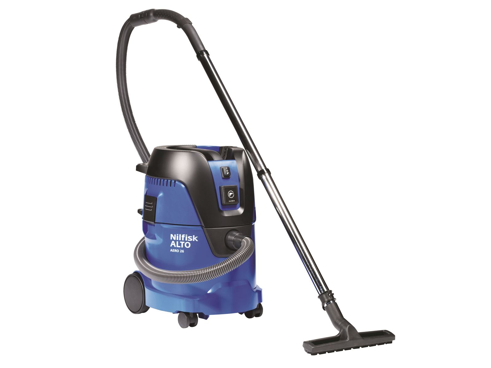 AERO 26-21 PC er en kraftfuld, let våd-/tørsuger til professionelle håndværkere med ergonomisk design, semiautomatisk Push&Clean filterrensesystem, blæsefunktion samt praktisk opbevaring af tilbehør. Våd-tørsugeren er desuden udstyret med udtag til elværktøj med automatisk tænd/sluk af støvsuger, vaskbart PET-fleece filterelement med filtreringsevne på minimum 99,9 %, samt gummirem til slangeopbevaring. Godkendt til L-klasse støv. Leveres inkl. filterelement, 3,5 mtr. sugeslange, adapter til værktøj, forlængerrør i krom, polstermundstykke og rund børste.