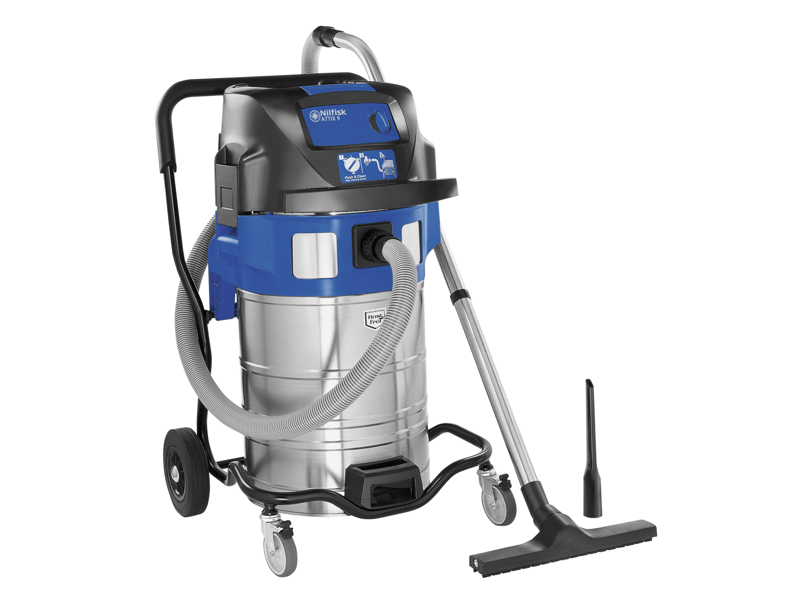 ATTIX 961-01 er en fleksibel og kraftfuld våd-/tørsuger, der med sine to motorer er udviklet til at klare alle de mest krævende industrielle opgaver med opsamling af affald, væsker og fint støv. Det vaskbare filter af PET nano-fiber materiale på ATTIX 961-01 bevarer sugeevnen konstant høj og holder vedligeholdelsesomkostningerne nede. Semiautomatisk Push&Clean filterrensesystem. 70-liters aftagelig tipbar rustfri stålbeholder. Ideel til vådsugning med pålidelig svømmerafbryder. Klargjort til antistatisk brug. Praktisk tilbehørsholder og værktøjsbakke. MultiFit tilbehørssystem giver optimal fleksibilitet.