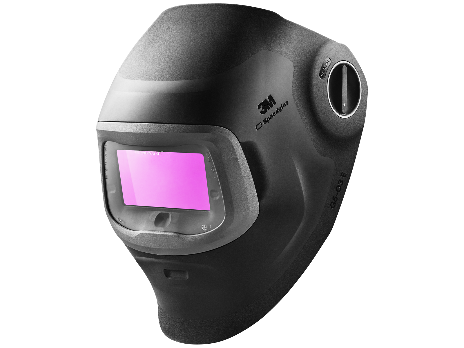 G5-03E svejseskærm med svejsekassette G5-01/03NC og naturlig farveteknologi. Robust, kompakt design med ergonomisk, justerbar hovedbøjle. Slibe- og skærefunktionalitet. Kompatibel med både G5-01- og G5-03-Automatisk nedblænding af svejseskærme.