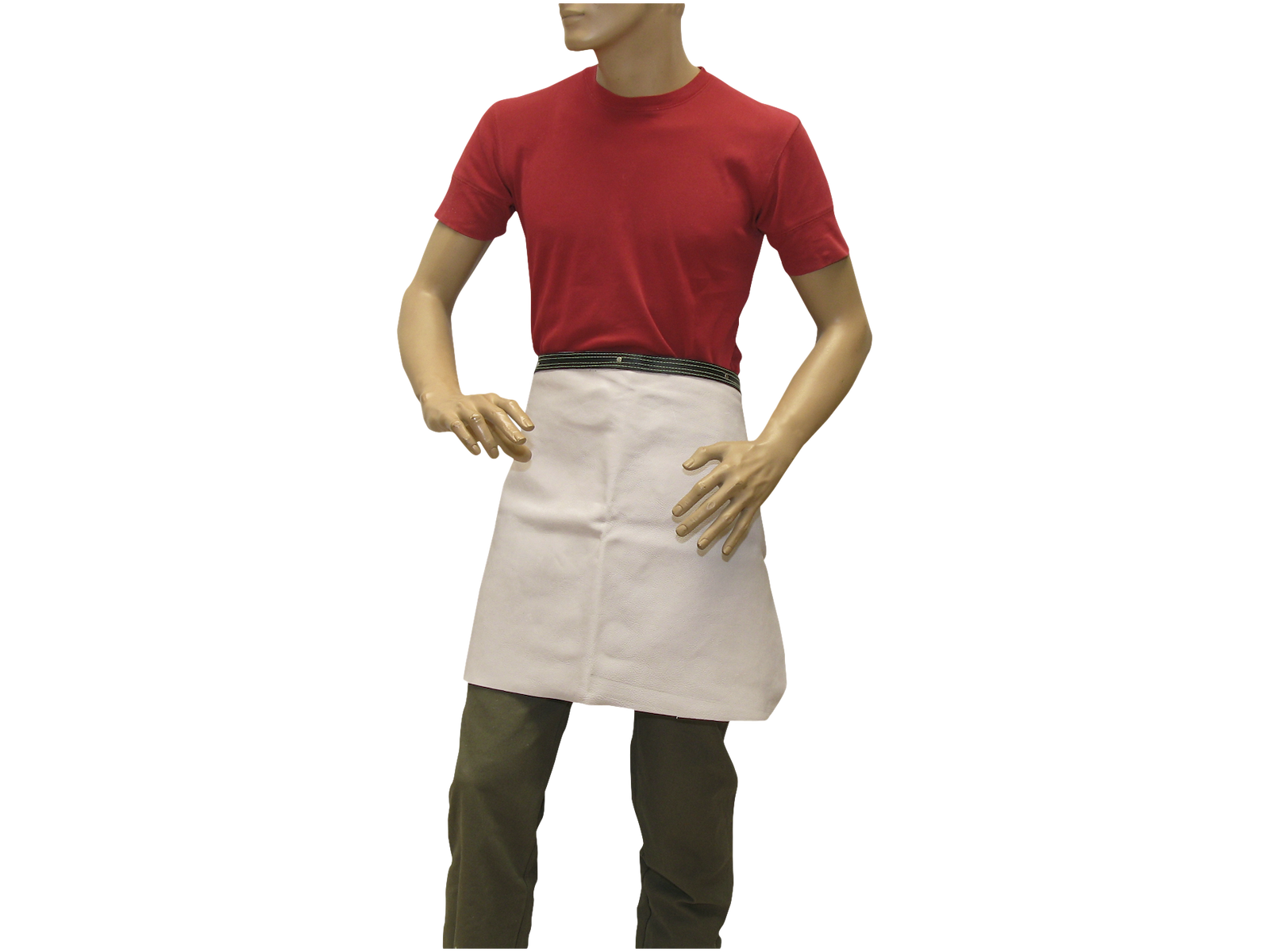 Skødskind til brug i træ-, beton- og metalindusti samt ved svejsearbejde. Tykkelse 1,5 mm. Syet med kevlartråd. Bredde 70 cm, længde 50 cm, livvidde 76-112 cm. Nittet og påsyet 25 mm læderrem i 115 cm længde med spændelukning.