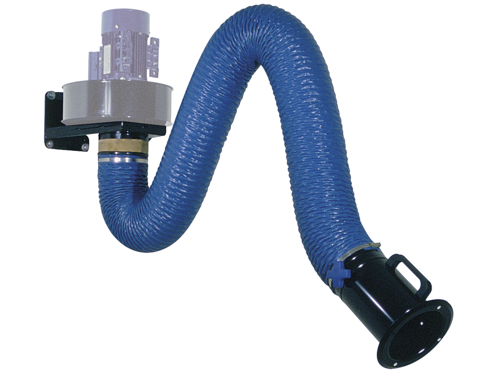 Punktudsug for røg, gasser og dampe. Udsugningsarm med tre led i stabil og let udførelse. Med parallelogramteknik og tre mekaniske fjedre. Sugetragt af stål med regulerbart spjæld og gribering. Tragt kan indstilles i mere end 90° i alle retninger. PVC slange ø160 mm med indvævet stålspiral. Leveres inklusiv vægfæste - eksklusiv suger.