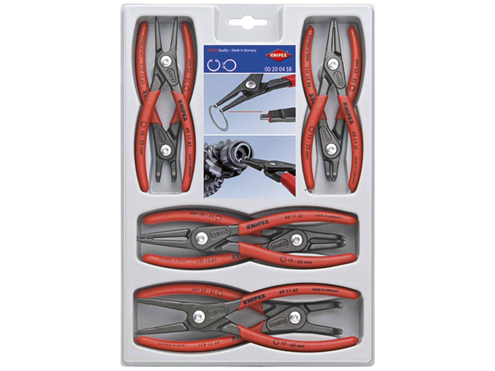 Præcisions-låseringstang-sæt. Attraktiv salgsemballage med SB-hulning. Bestykket med de mest gængse præcisions-låseringstænger, som opfylder højeste krav. Stabil kunststofemballage, der egner sig også til den videre opbevaring af tængerne. Med 8 dele.