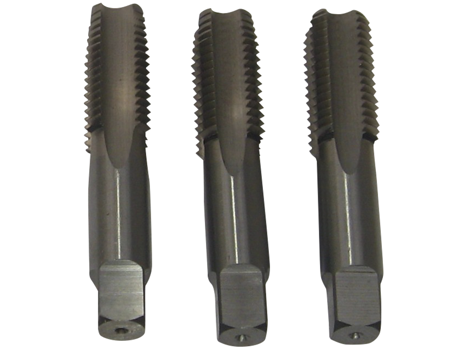 Håndtapsæt 3 stk spids, mellem og bundtap HSS DIN352 HSS. Håndtappe af højpræstations-hurtigstål HSS. Til gennemgangsgevind og bundhulsgevind i ulegeret og lavlegeret stål op til 800 N/mm² styrke. Tempergods og ikke jernholdige metaller. Gevindet skæres af 3 arbejdsgange.