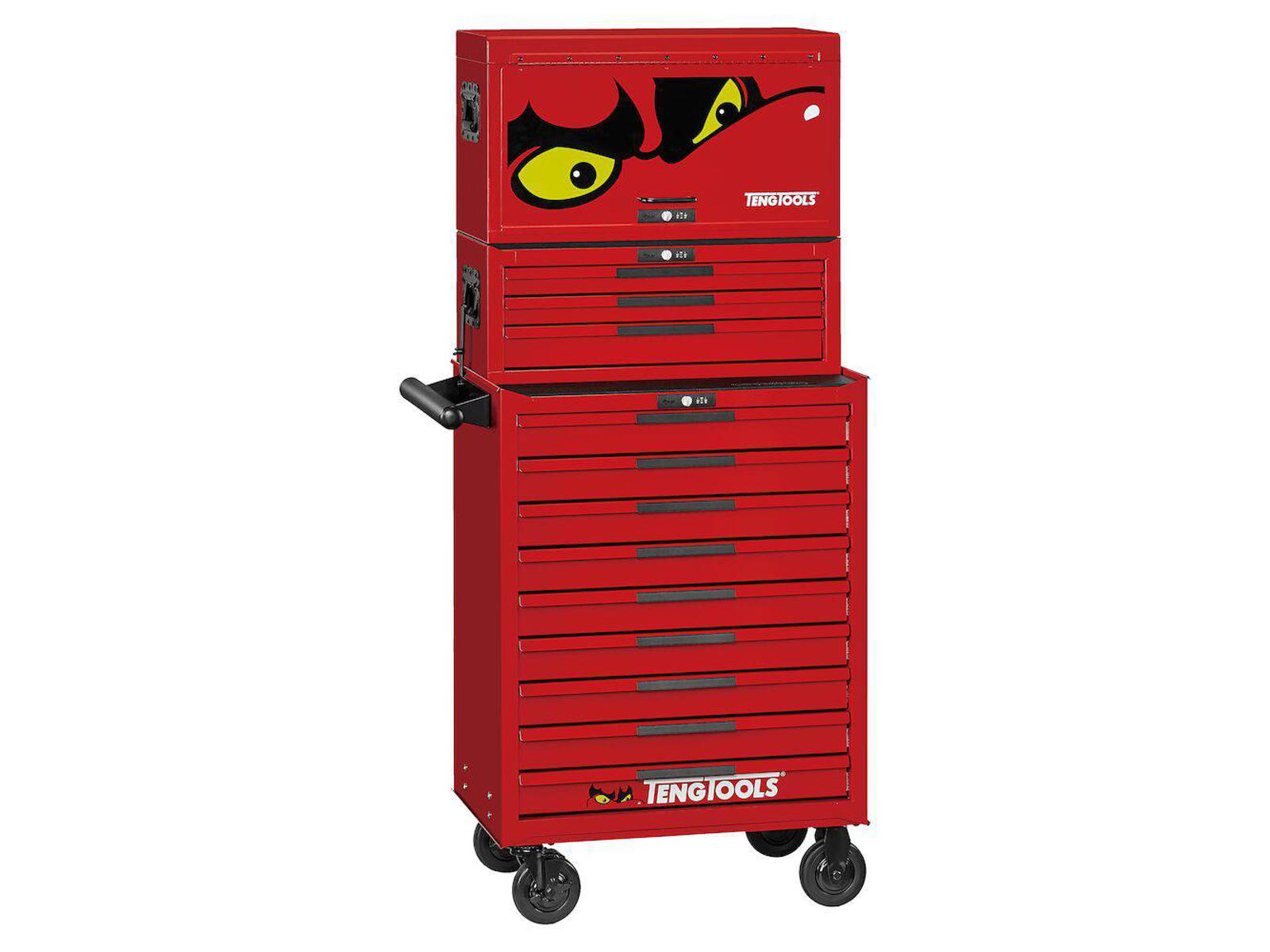 Værktøjssættet TengTools TKS26R753T består af tre 26'’ brede enheder, der er stablet oven på hinanden, og som indeholder et værktøjssæt med 753 dele med det meste, du har brug for ved arbejde på biler og mekanisk arbejde. Konstruktion af stål af høj kvalitet, der er behandlet med fosfatfri rustbeskyttelse (5-trinsbehandling), og har en pulverlakeret overflade. Robuste styrehjul (5"), som letter transporten på værkstedet og kombinationslås med tre cifre på hver enhed. 16 skuffer, alle med 3-trins kuglelejeskinner og måtter af EVA-skum. TengTools værktøjsløsning til organiseret og lettilgængelig værktøjsopbevaring.
