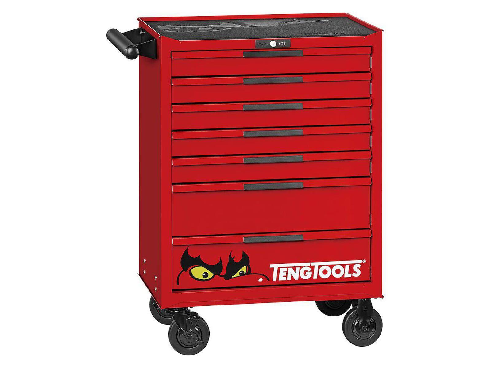 En 26'' matrød montørvogn med 282 dele til professionelle branchefolk. Hver af de 7 skuffer har en kapacitet på 30 kg. 3-trins kuglelejeskinner og EVA-måtter til beskyttelse. 3-delt vognramme af kraftigt stål. Behandlet med en fosfatfri, 5-trins rustbeskyttelsesproces og har en pulverlakeret finish for slidstyrke. Udstyret med 5'' kuglehjul og komfortgreb for nem manøvreevne. TengTools Tool Control-system til organiseret og tilgængeligt værktøj.