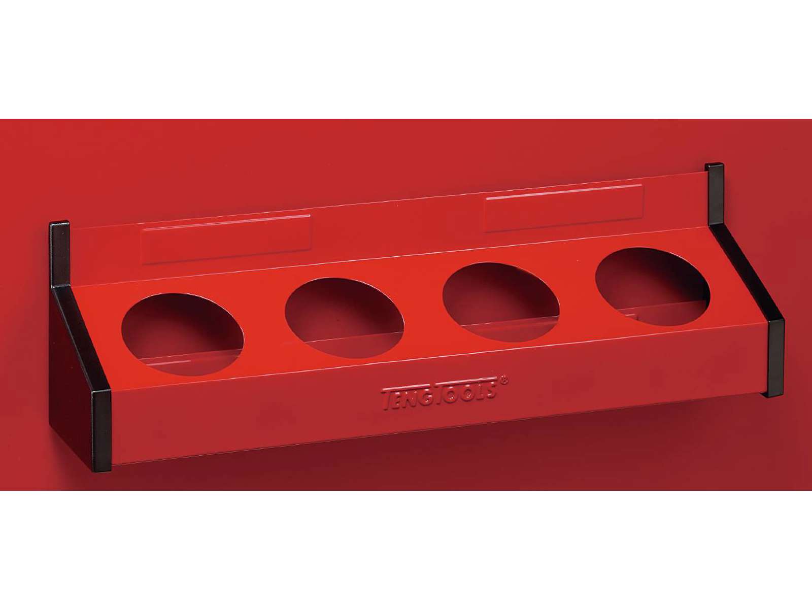 Hylde til 4 spraydåser. Med magneter der holder hylden på plads på f.eks. værktøjsvogne, værktøjsplader etc.