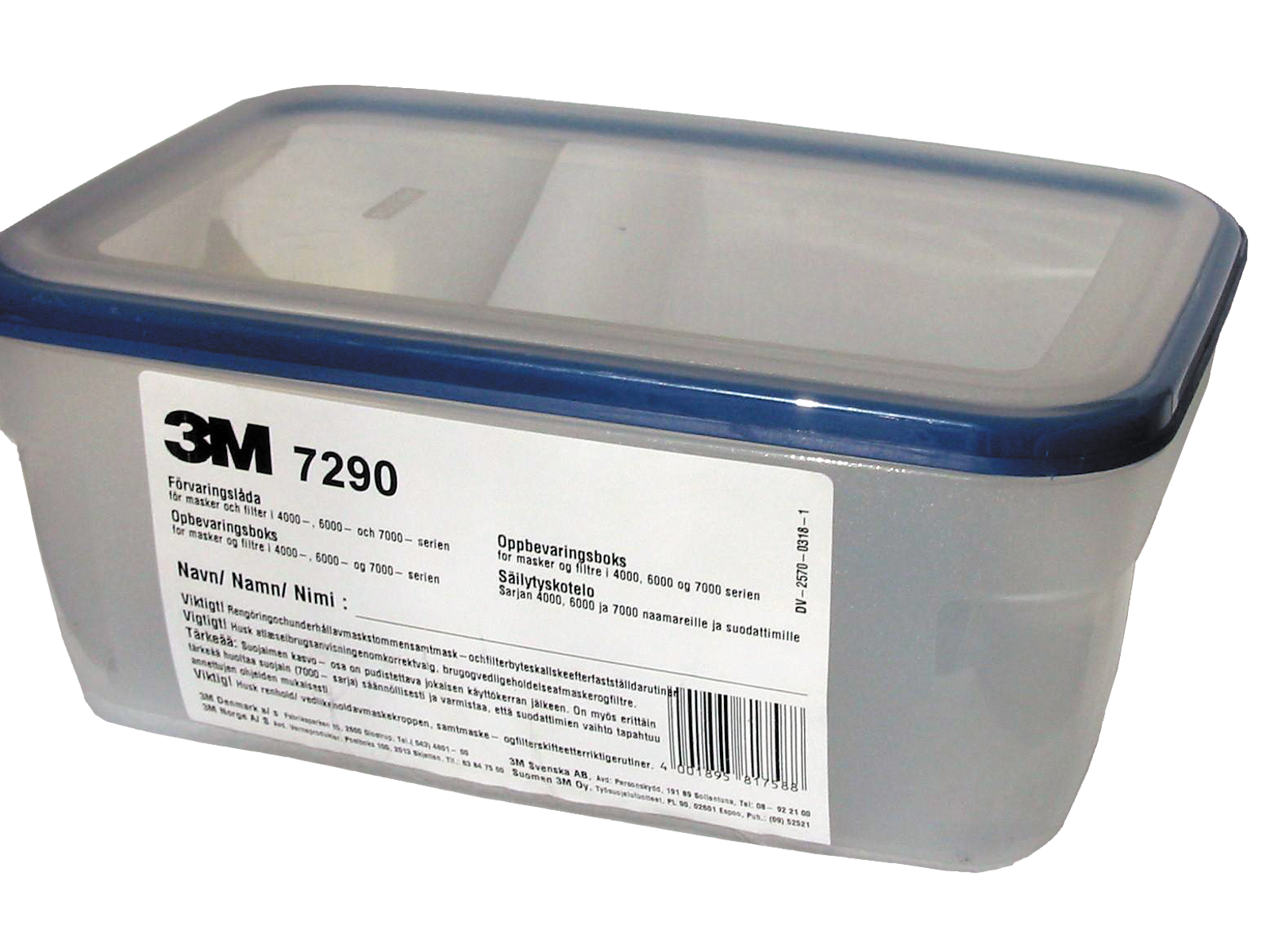 Opbevaringsboks til 3M genanvendelige åndedrætsværn fra serierne 4000, 6000 og 7000.