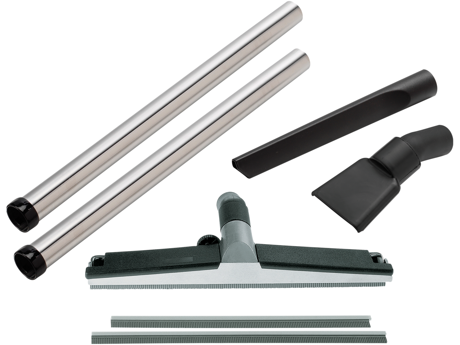 Håndværks- og industrisæt til støvsuger. Sættet består af 5 dele (ø36 mm): 2 × 500 mm forlængerrør i rustfrit stål, 300 mm fugemundstykke i plast, 450 mm gulvmundstykke i aluminium til tørsugning, ekstra gummilæber til vådsugning (sæt á 2 stk.) og 100 mm fladt gummifugemundstykke (olie- og varmeresistent).