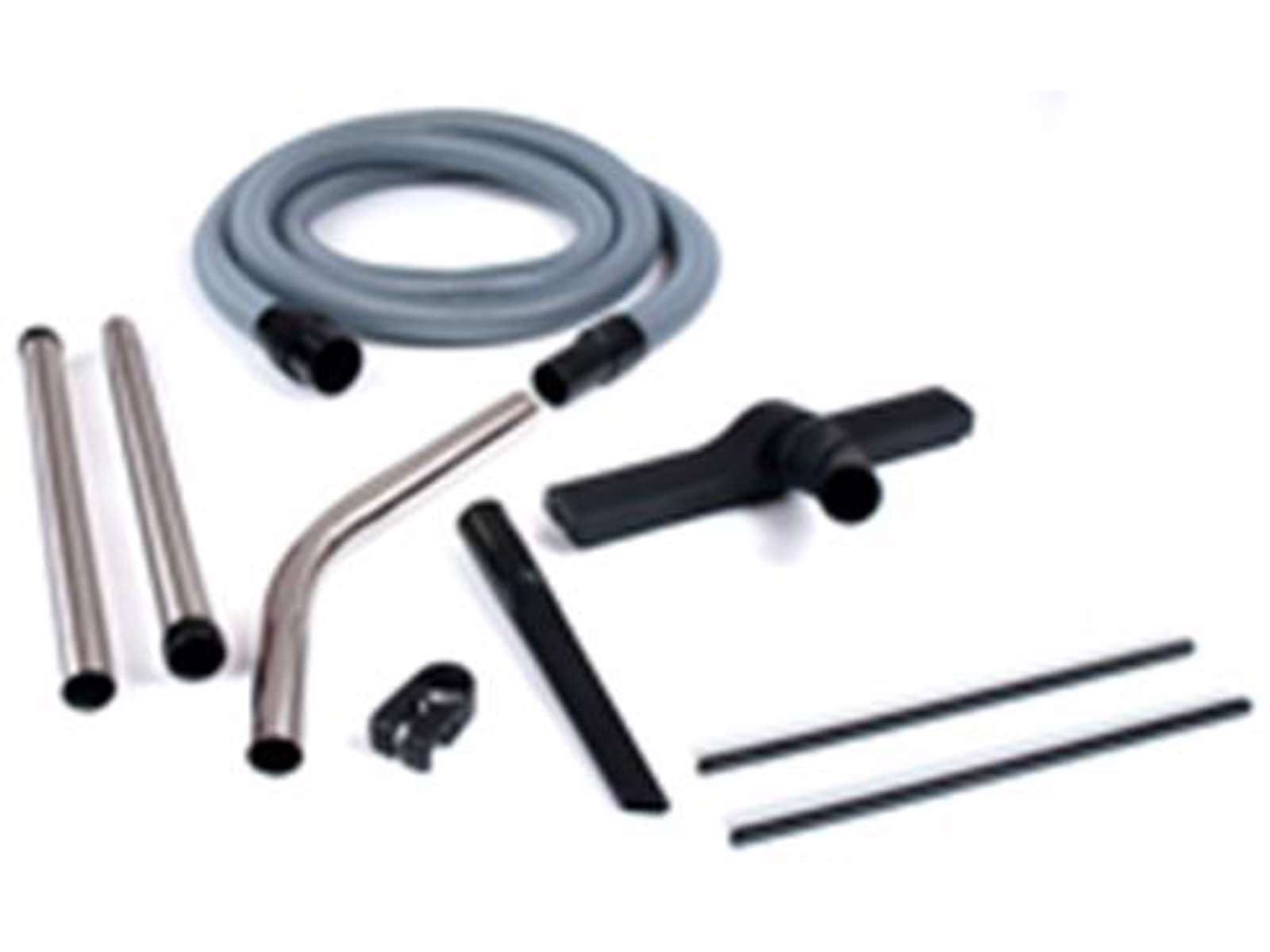 Industrisæt til støvsuger. Sættet består af 5 dele (ø38 mm): 4 mtr. Universal-sugeslange, rørbøjning i rustfrit stål, 2 × 500 mm forlængerrør i rustfrit stål, 38 cm bredt gulvmundstykke samt fugemundstykke i plast.