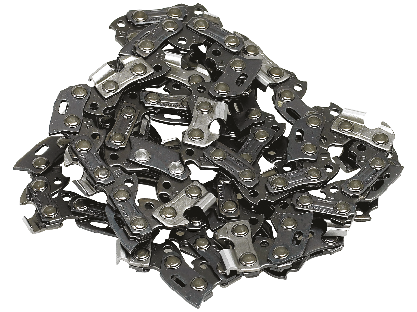Produceret i en speciel stållegering for bedre slidstyrke mod mekaniske brud. Led og skær er hårdforkromet for at opnå optimale skæreegenskaber og længere intervaller mellem slibningerne. Lejerne er monteret med hypoidolie for minimal slitage ved "indkøring" af savkæden. Leveres færdigslebet fra fabrikken.