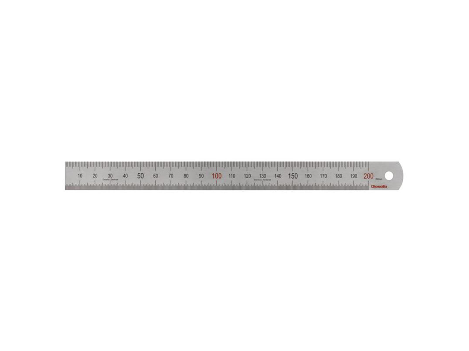 • Matforkromet stållineal med 1 mm graduering i top og 0,5 mm graduering i bund. På bagsiden har linealen gevindtabel og omsætningstabel fra tommer til millimeter. Læseretningen er venstre mod højre. DIN2004/22/ECII tolerance.