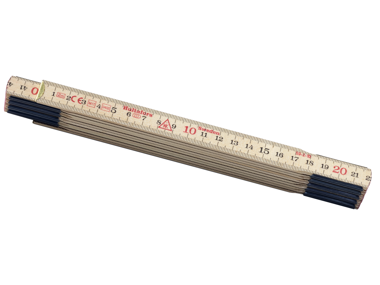 • Meterstok 59 er en rigtig klassiker - et "must" for enhver håndværker. Tommestokken er traditionelt fremstillet i glasbirk med led i svensk stål, som muliggør tynde led og en smidig meterstok. Metrisk gradering i sort på begge sider med røde decimetercifre. Coated med en vandbaseret beskyttelseslak der øger modstandskraften mod smuds og fugt. Leddene er varmebehandlede, lakerede og olieret på tre punkter for at give dem førsteklasses egenskaber. Typegodkendt i henhold til EU Klasse III. Fås i flere varianter.