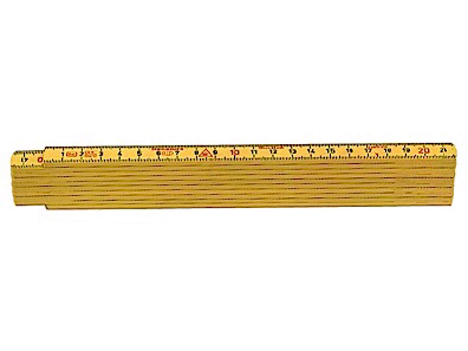 • Meterstok G59 er fremstillet i glasfiberforstærket polyamid, som giver øget modstandskraft mod fugt. Foliepræget metrisk gradering i sort på begge sider og røde decimetercifre. Alle led låses i trin af 90 grader. Typegodkendt i henhold til EU klasse III.