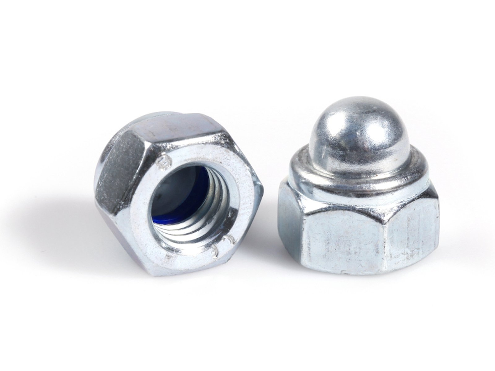• Hatlåsmøtrik/kuppellåsmøtrik beregnet til montering hvor låsning af samlingen ønskes. Låsningen fremkommer gennem den friktion der skabes mellem nylonbøsningen og gevindet.