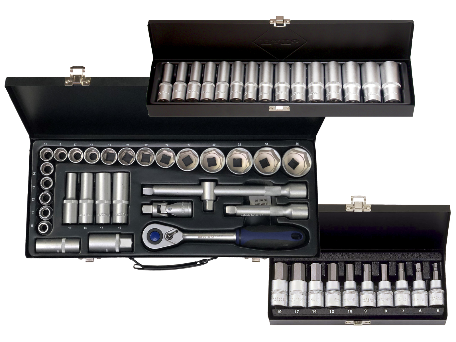 Sampak med 28 dele 1/2" topnøglesæt, 15 dele topsæt og 10 dele stifttopsæt. Topnøglesæt med 1/2" 6kt EasyDrive toppe i krom- vanadiumstål. Sættet indeholder korte toppe: 10 - 11 - 12 - 13 - 14 - 15 - 16 - 17 - 18 - 19 - 21 - 22 - 24 - 27 - 30 - 32 - 34 - 36 mm, lange toppe: 10 - 13 - 17 - 19 mm, tændrørstoppe 16-21 mm, forlængere med Wobble hhv. 125 og 250 mm, kardanled og skraldenøgle med udløser. Leveres i metalboks. Topsæt med 1/2" 6kt lange toppe i krom-vanadiumstål med satineret finish og riller til fingerskruning. Sættet indeholder 10 - 11 - 12 - 13 - 14 - 15 - 16 - 17 - 18 - 19 - 20 - 21 - 22 - 23 - 24 mm. Leveres i metalæske. Stifttopsæt med 1/2" 6kt stifttoppe til bolte og skruer med indv. 6kt. Fremstillet i krom-vanadiumstål med satineret overflade. Sættet indeholder: 5 - 6 - 7 - 8 - 9 - 10 - 12 - 14 - 17 - 19 mm. Leveres i metalboks.