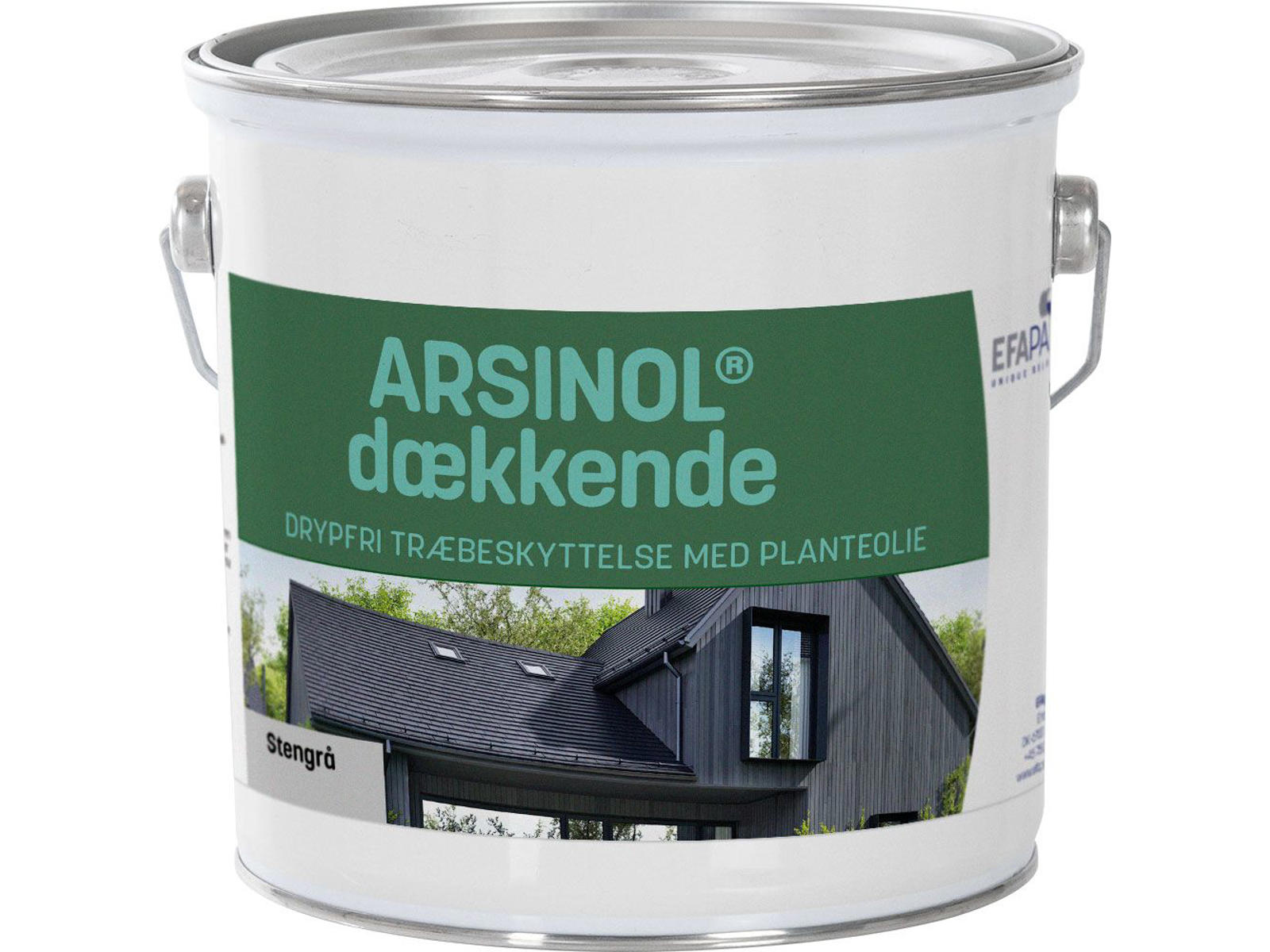 • Drypfri træbeskyttelse med god dækkeevne. Udendørs dækkende og tixotropisk træbeskyttelse, der indeholder linolie og er tilsat farvepigmenter med stor lysægthed og dækkeevne. Anvendes til vedligeholdelse af udendørs træværk, som tidligere har været behandlet med Arsinol. Arsinol dækkende er god til farveskift, selv fra mørke til lyse farver og med sin gele’agtige konsistens skal den hverken omrøres eller fortyndes.
