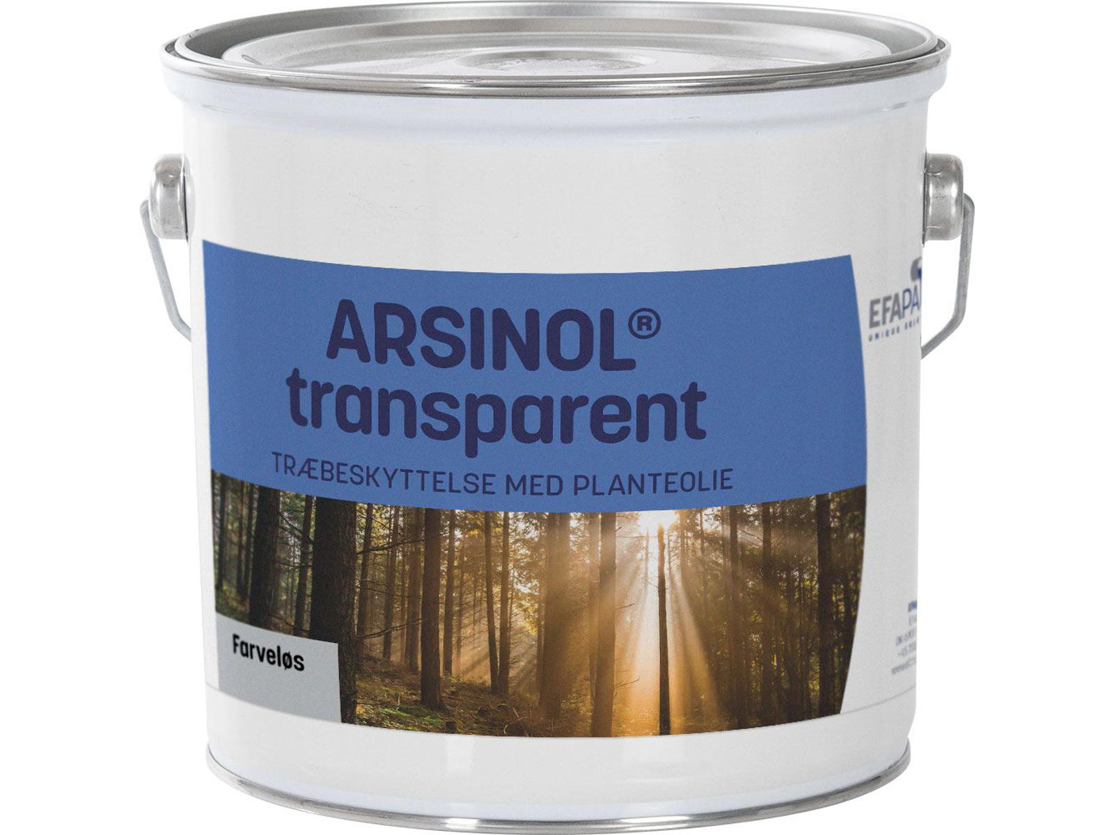 Transparent træbeskyttelse til vedhæftning og slutbehandling. Udendørs træbeskyttelse med indhold af planteolie og aktive stoffer. Anvendes til slutbehandling af udendørs træværk, til tidligere behandlet træ med transparent træbeskyttelse eller til vedhæftning hvis træet senere skal træbeskyttes med dækkende kvaliteter. Arsinol transparent beskytter og hindrer udtørring af træ.
