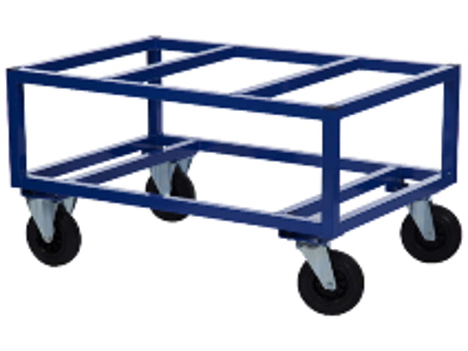 Pallvagn avsedd för EUR-pall 1200 x 800 mm. Försedd med 2 fasta och 2 svängbara massivgummihjul, 200 x 50 mm.