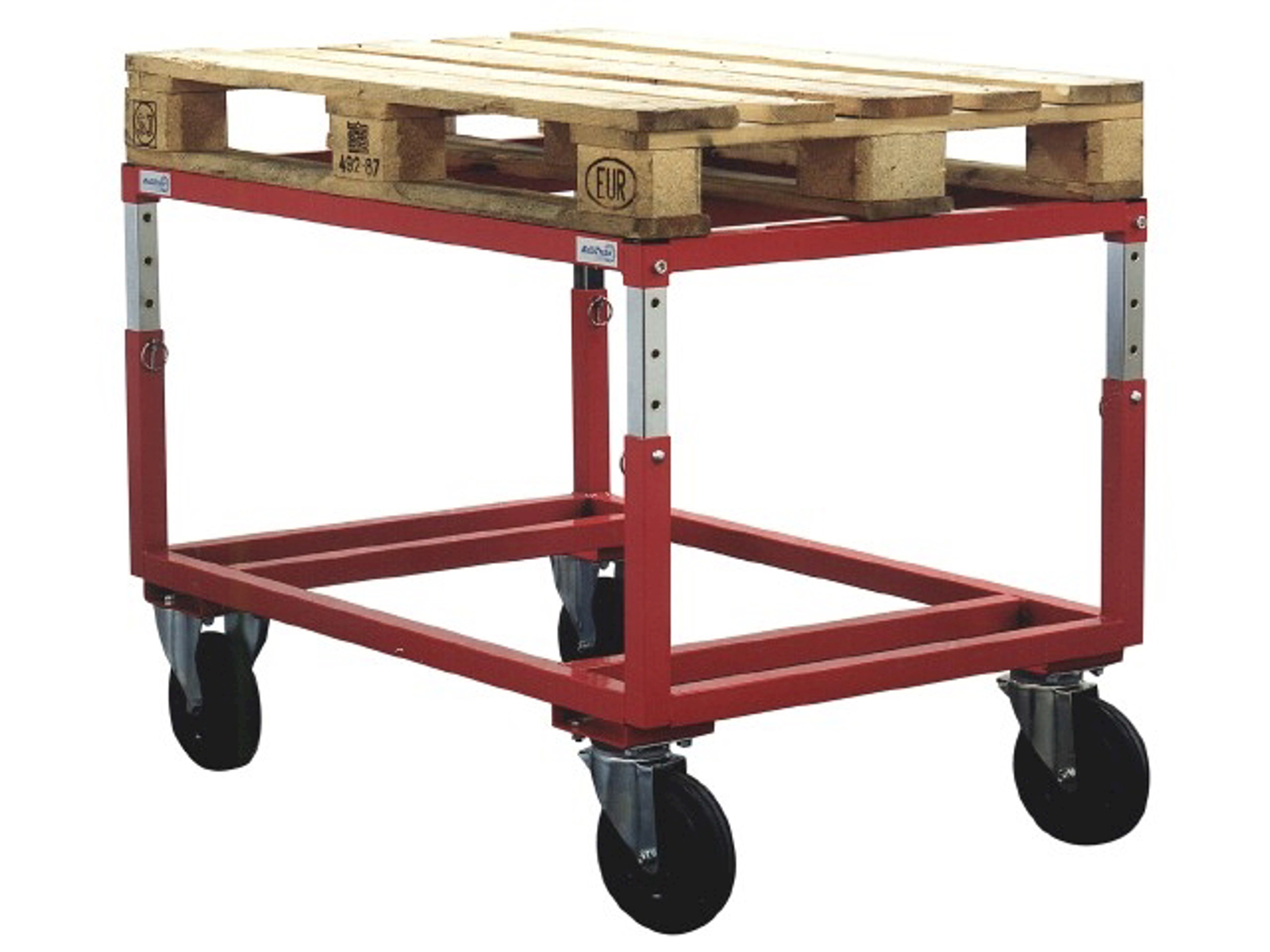 | Pallvagn avsedd för EUR-pall 1200 x 800 mm samt halvpall 800 x 600 mm. Försedd med 2 fasta och 2 svängbara massivgummihjul, 200 x 50 mm. Den ställbara pallvagnen är lämplig att använda vid maskiner och arbetsbord för att få rätt arbetshöjd. Ställbar i olika lägen. |