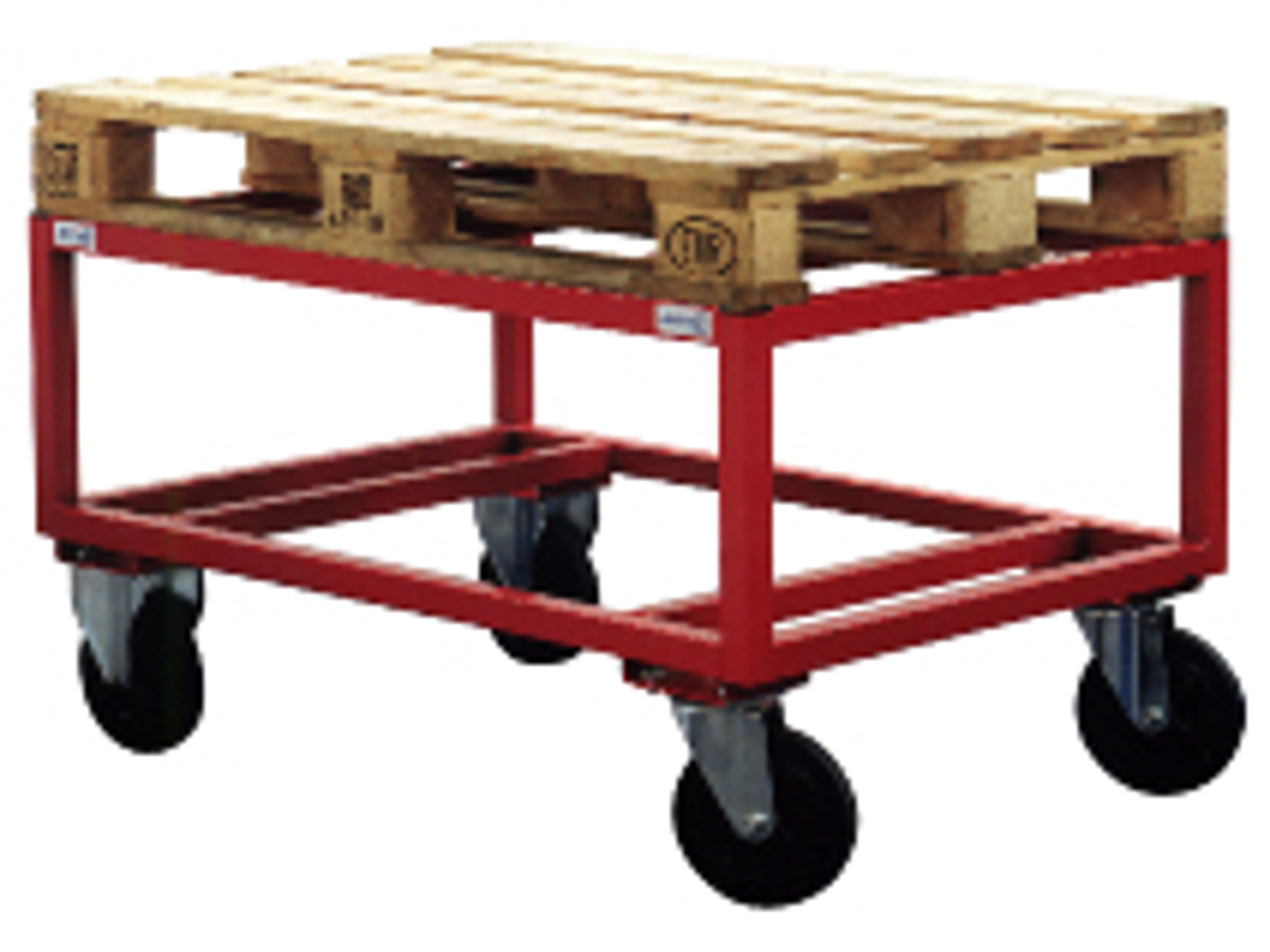 Pallevogn beregnet til halvpaller 800x600mm, udstyret med 2 faste og 2 drejelige massiv gummihjul Ø200x50mm