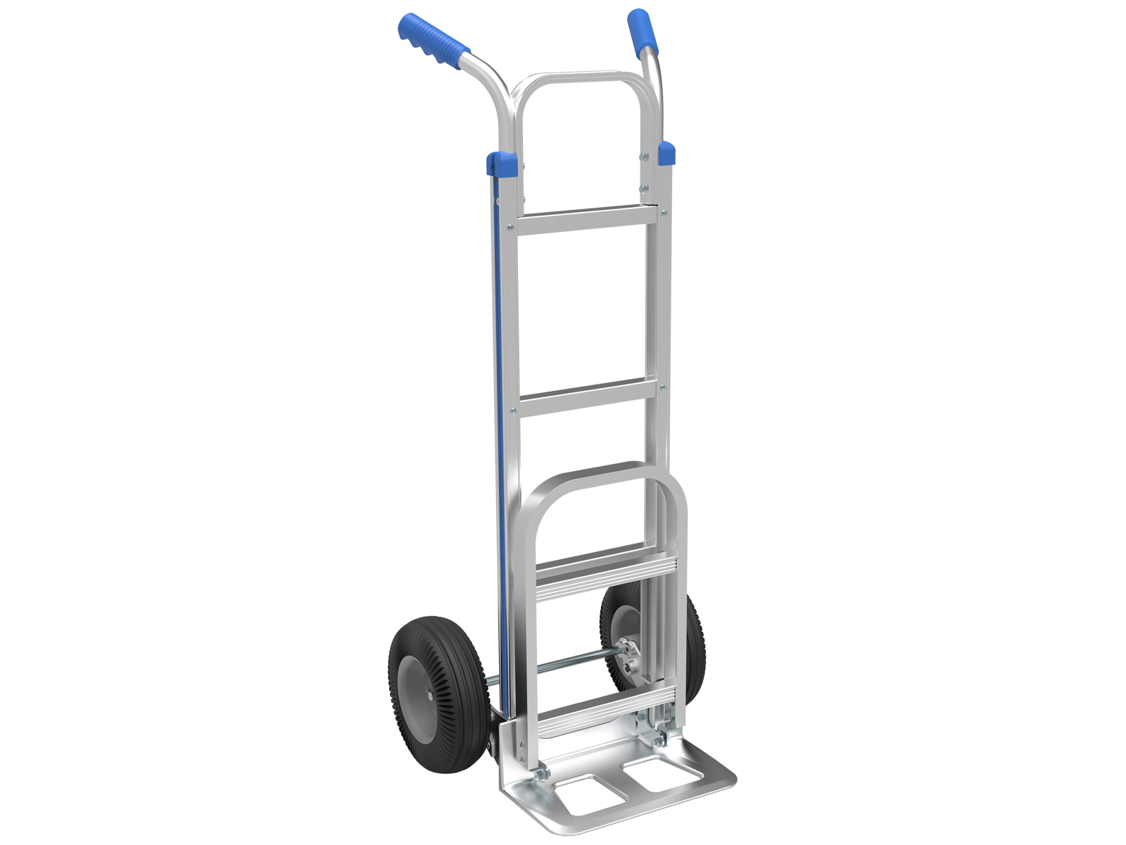 Funktionel letvægtsaluminiums sækkevogne. Brugervenlig, let at håndtere og har den fordel, at den ikke ruster. Høj lastkapacitet på 200 kg og stødabsorberende og punkterfri PUR-hjul. ALU sækkevognen er udstyret med fast bæreplade på 355×225 mm samt et udfald på 305×565 mm.