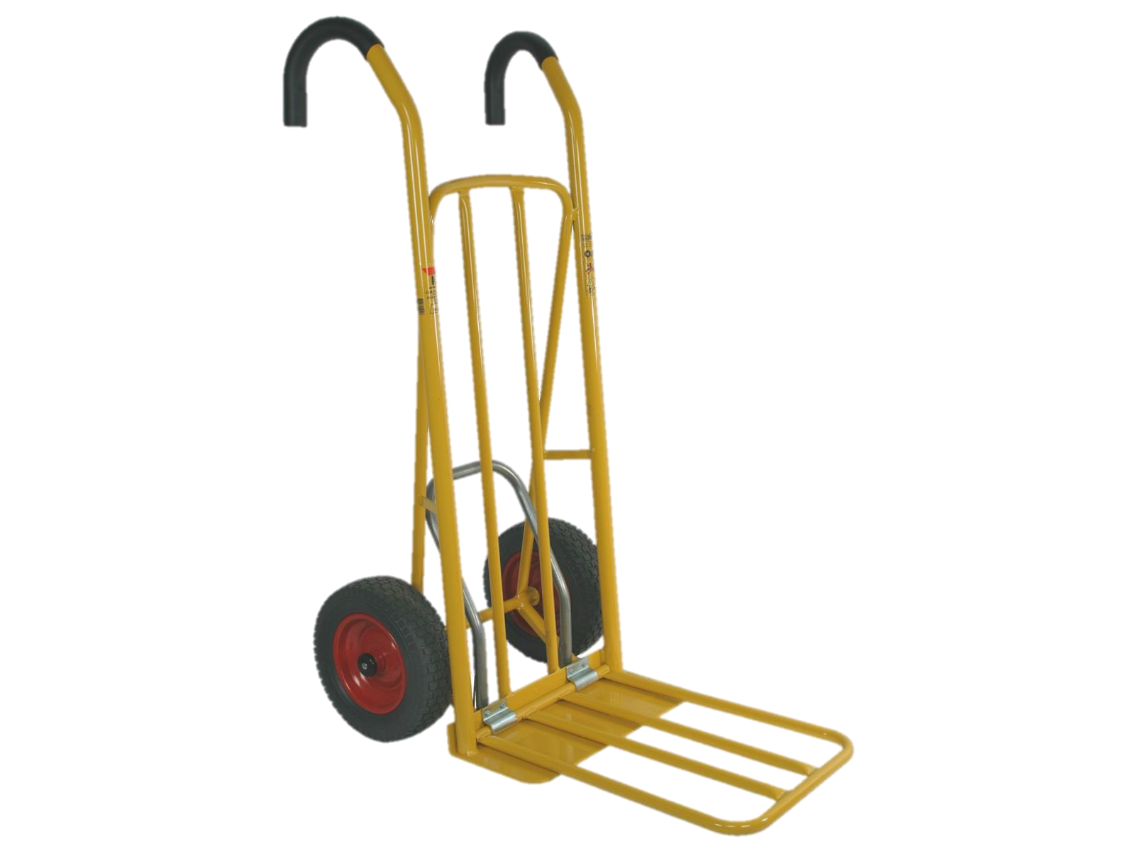 Sækkevogn med udfaldsramme til 250 kg. Monteret med 3.00 × 4 (e.00 × 6) PUR punkterfrie hjul m. stålfælge og rullelejer. Modellen har Ergonomiske håndtag.