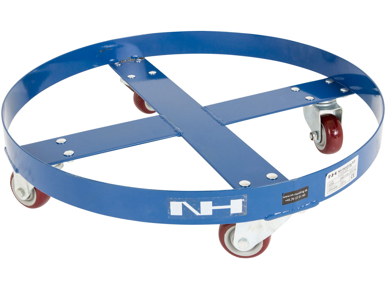 Nem transport af tønder. Enkel og letkørende løsning til tøndetransport. Kan også anvendes til at fragte dæk eller andet cylinderformet. Egnet til alle 200 ltrs ståltønde.