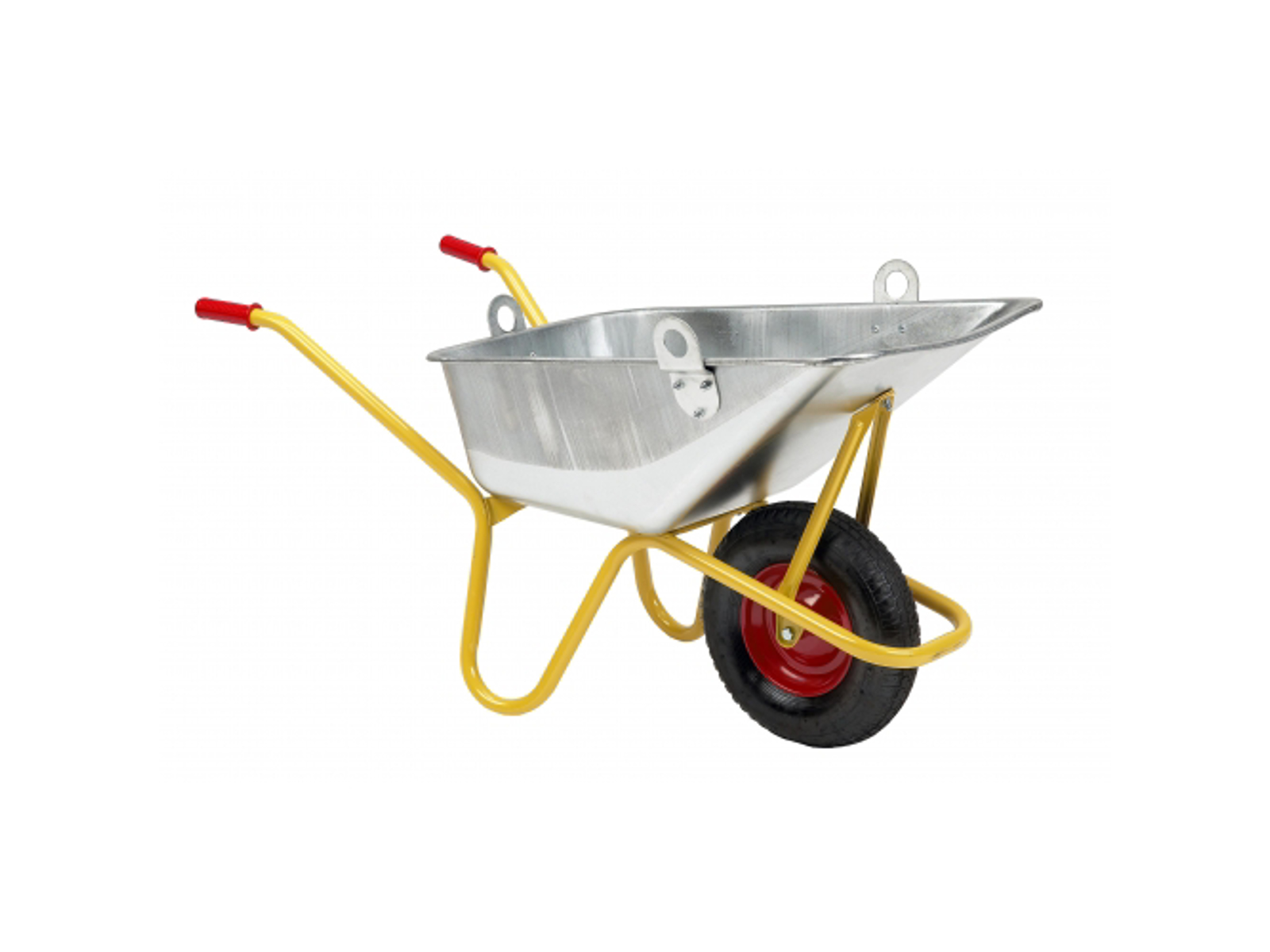 Med galv. 110 ltr. Kasse med løfteøjer, 30 mm lakeret rørstel og 4.00x8 lufhjul med kuglelejer. Produceret i Danmark
