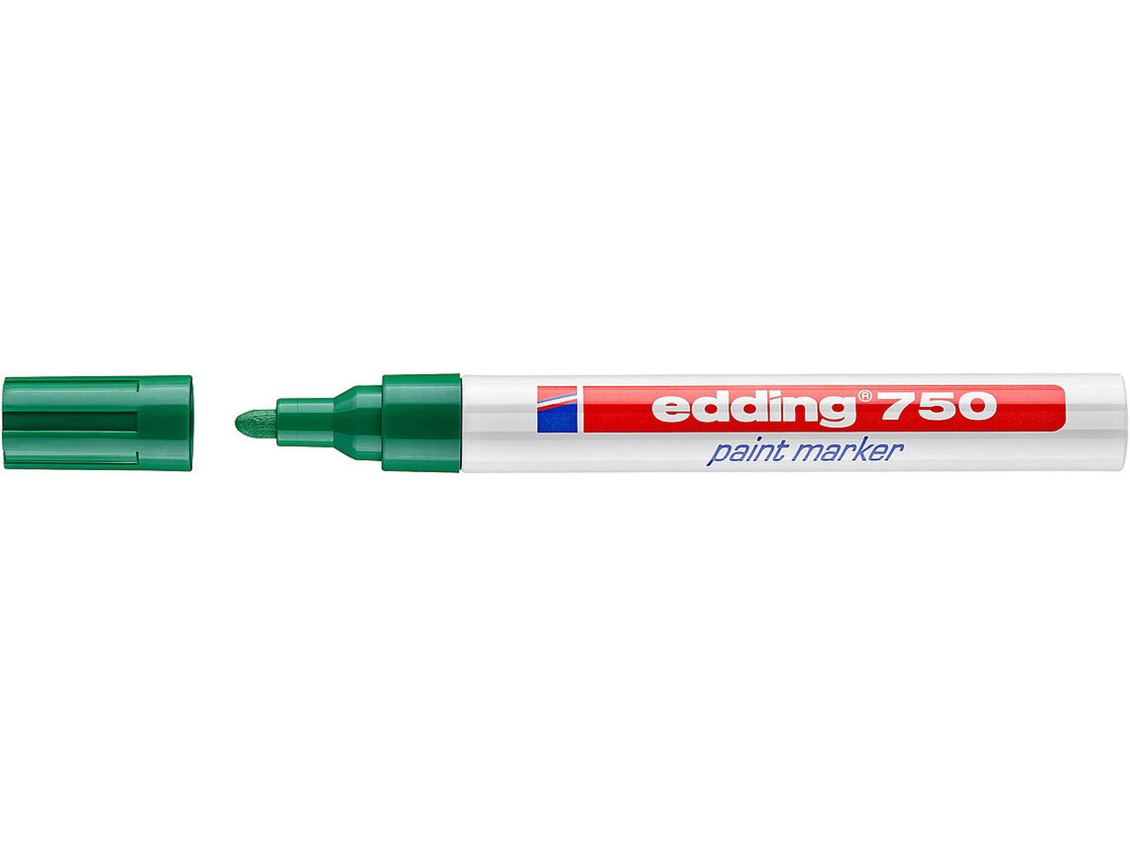 Med Edding 750 får du en paintmarker med rund spids og en stregbredde på 2-4 mm som giver en yderst holdbar og slidstærk markering på langt de fleste overflader, som f.eks. metal, plastik, glas, træ, papir, karton og pap.