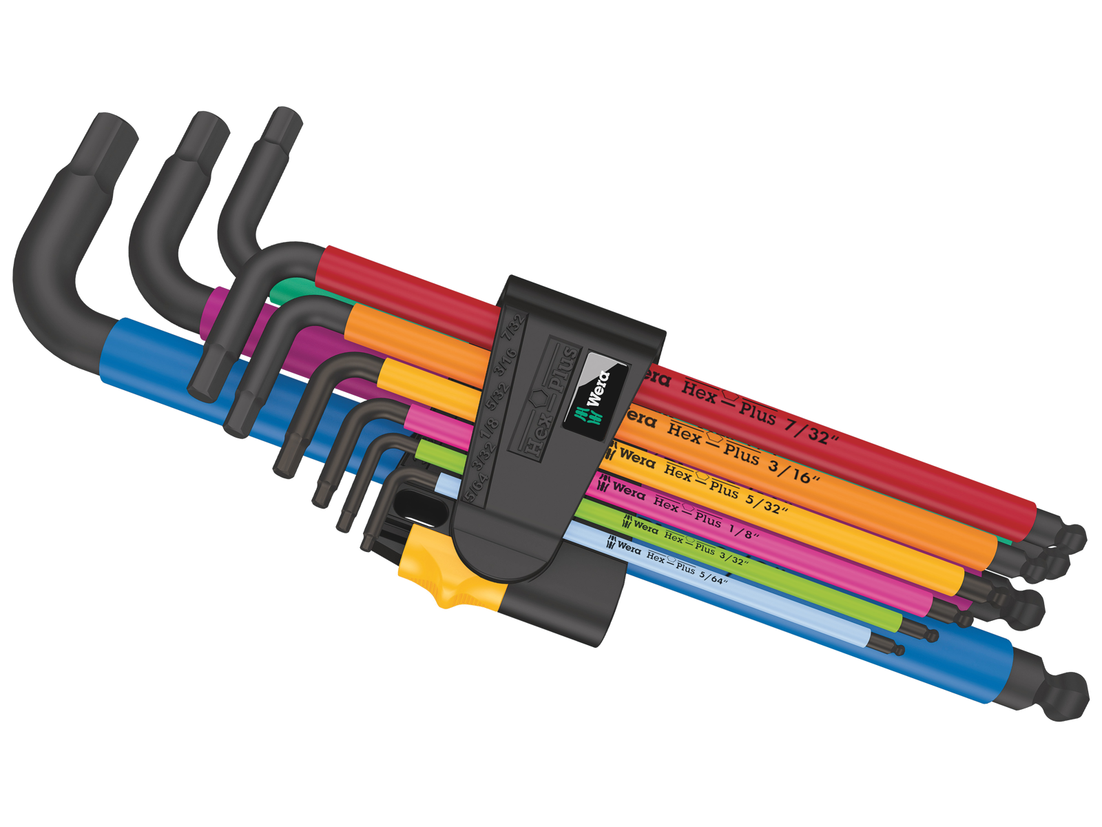 Stiftnøglesæt med tommemål til skruer med indvendig sekskant. Sættet indeholder 9 stk. nøgler med plastbeklædning (SPKL) af grebsvenligt materiale. Beklædningen gør arbejdet behageligt også ved lave temperaturer og skåner fingrene. Blandt alle nøgler har man hurtigt fat i den rigtige takket være farve- og størrelsesmærkning.