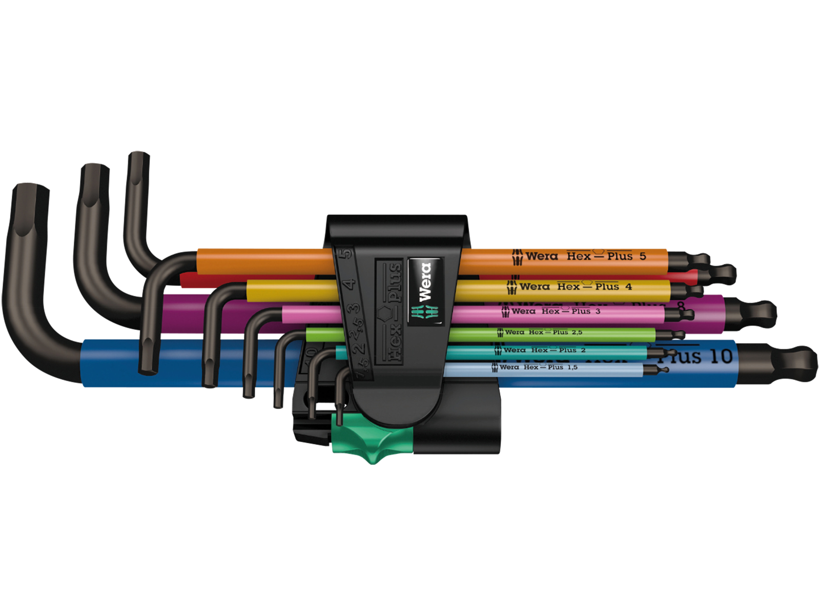 Kvalitets Wera vinkelnøglesæt med farvemarkeret komfortable plastikbeklædning. Derved får man hurtigt fat på værktøjet og det ergonomiske og bekvemme greb skåner også hænderne ved lave temperaturer. Slitagefrit clip-materiale til varigt sikkert hold på vinkelnøglerne samtidig med, at de let tages ud. Hex-Plus-profilen giver større kontaktflader i skruehovedet. Kærveffekten reduceres derved til et minimum, ødelæggelsen af skruehovedet eliminieres næsten. Kuglen på den lange arm tillader sikkert arbejde også i vanskelige montagesituationer. BlackLaser-overfladebehandlingen sørger for fremragende overfladebeskyttelse, og også mod korrosion, og for lang levetid. Laserpåført og derved slitageresistent størrelsesmarkering på vinkelnøglen, gør at man hurtigt har fat i den rigtige. Fås i flere varianter.
